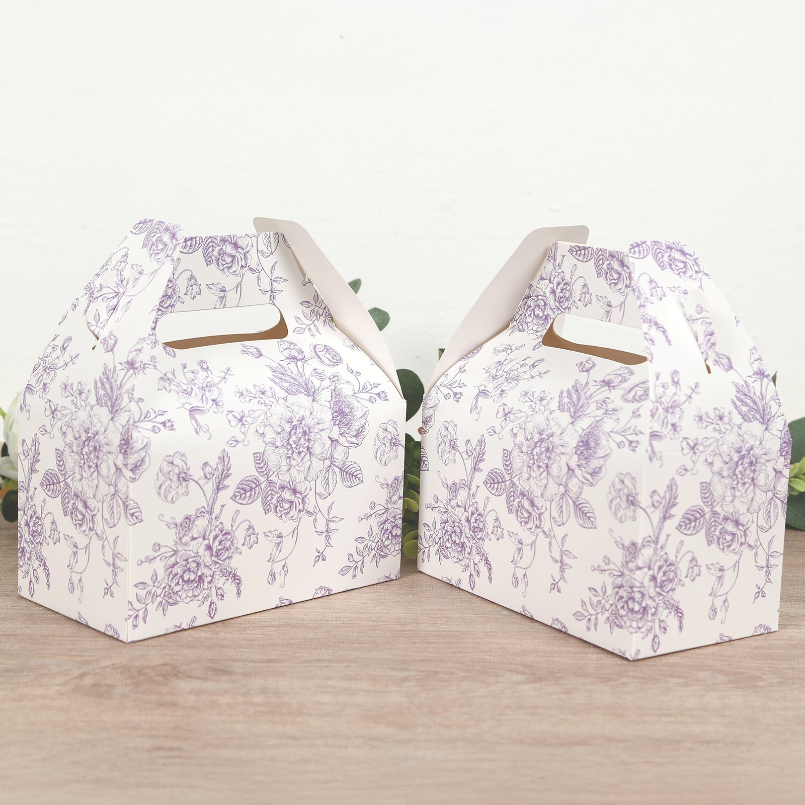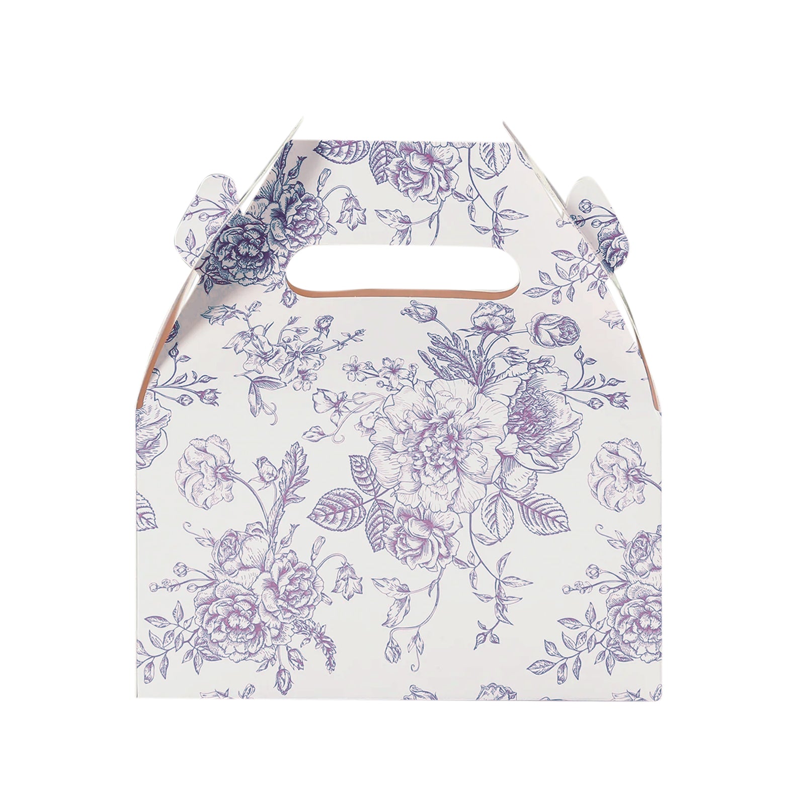 25 Pack Candy Treat Tote Boxes in French Toile Pattern - Matte Lavender and White Party Favor Gable Boxes, Cardstock Paper - 6"x3.5"x7"