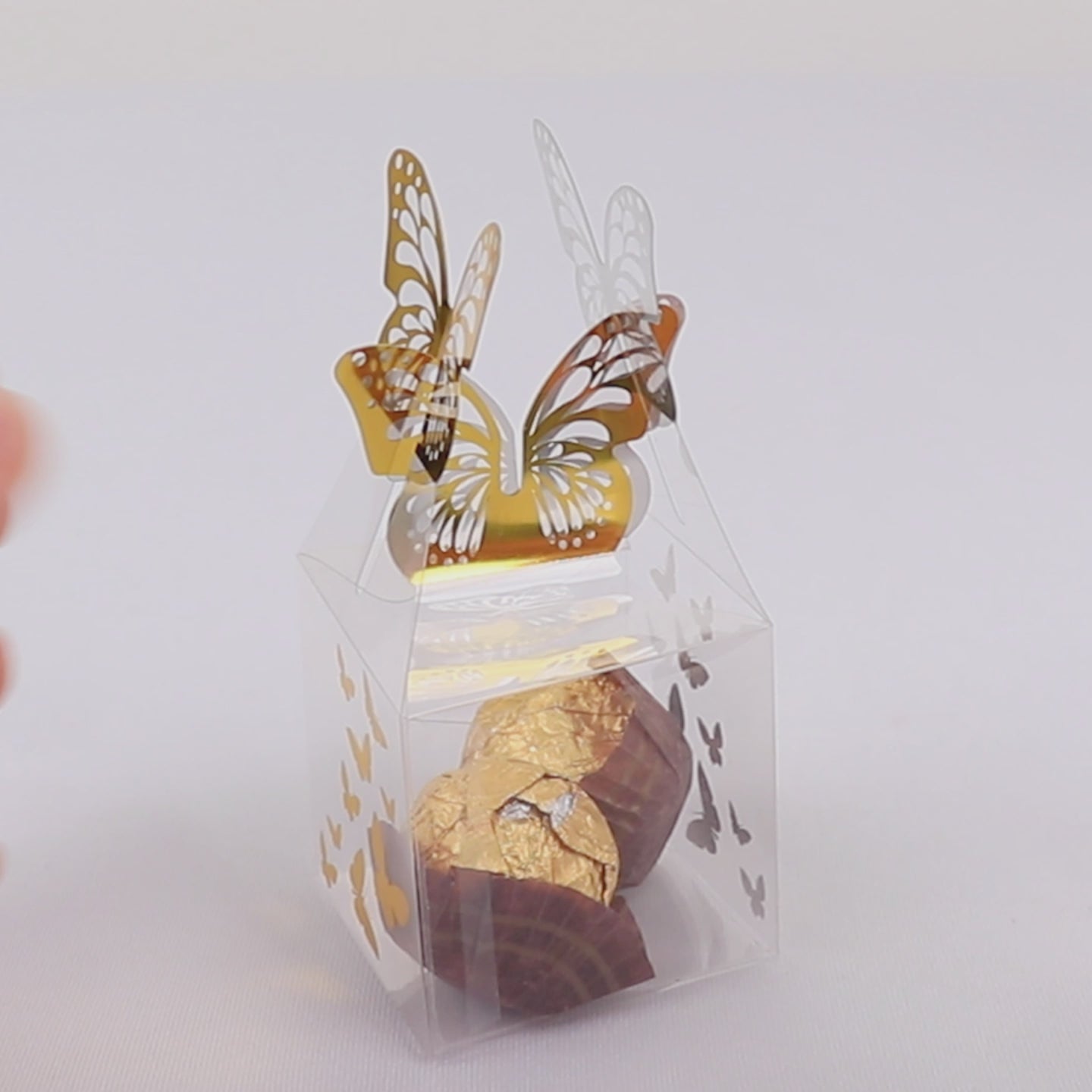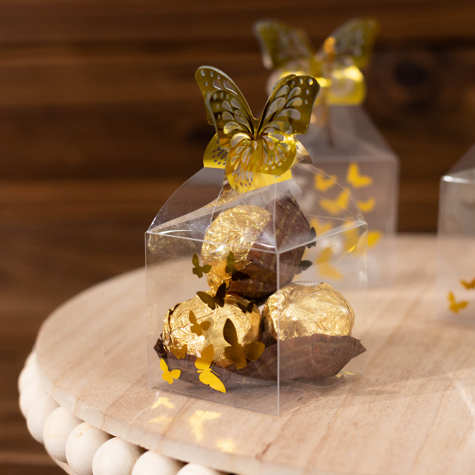 25 Pack Clear Transparent Square Party Favor Boxes with Gold Butterfly Top, Clear Candy Treat Gift Boxes - 2"x2"x4"