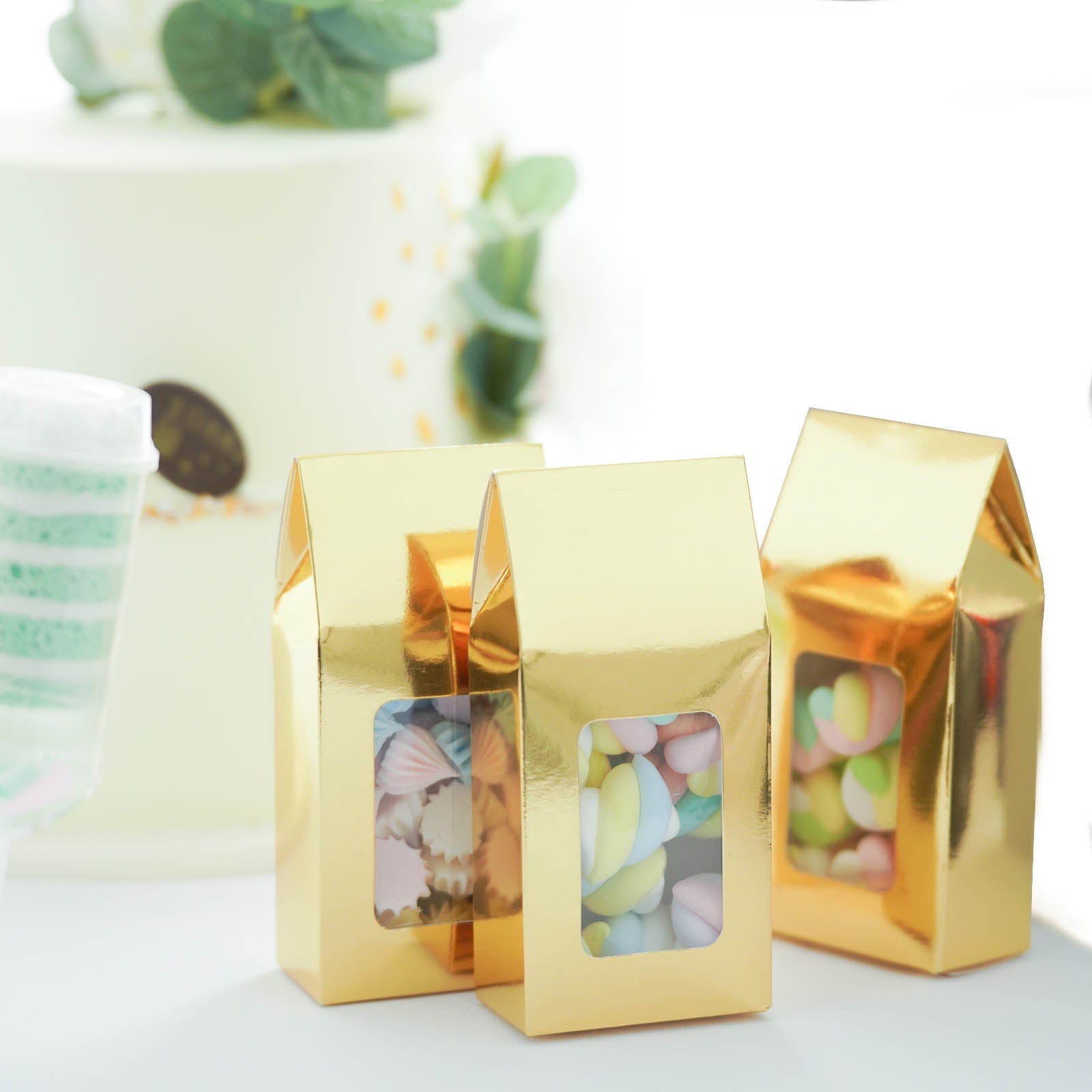 25 Pack | Gold Tote With Window Party Favor Candy Gift Boxes 2.75" X 1.5" X 6"