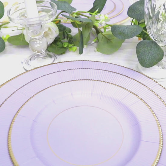 25 Pack Lavender Lilac Sunray Heavy Duty Paper Charger Plates with Gold Rim, 13" Round Disposable Serving Plates - 350 GSM
