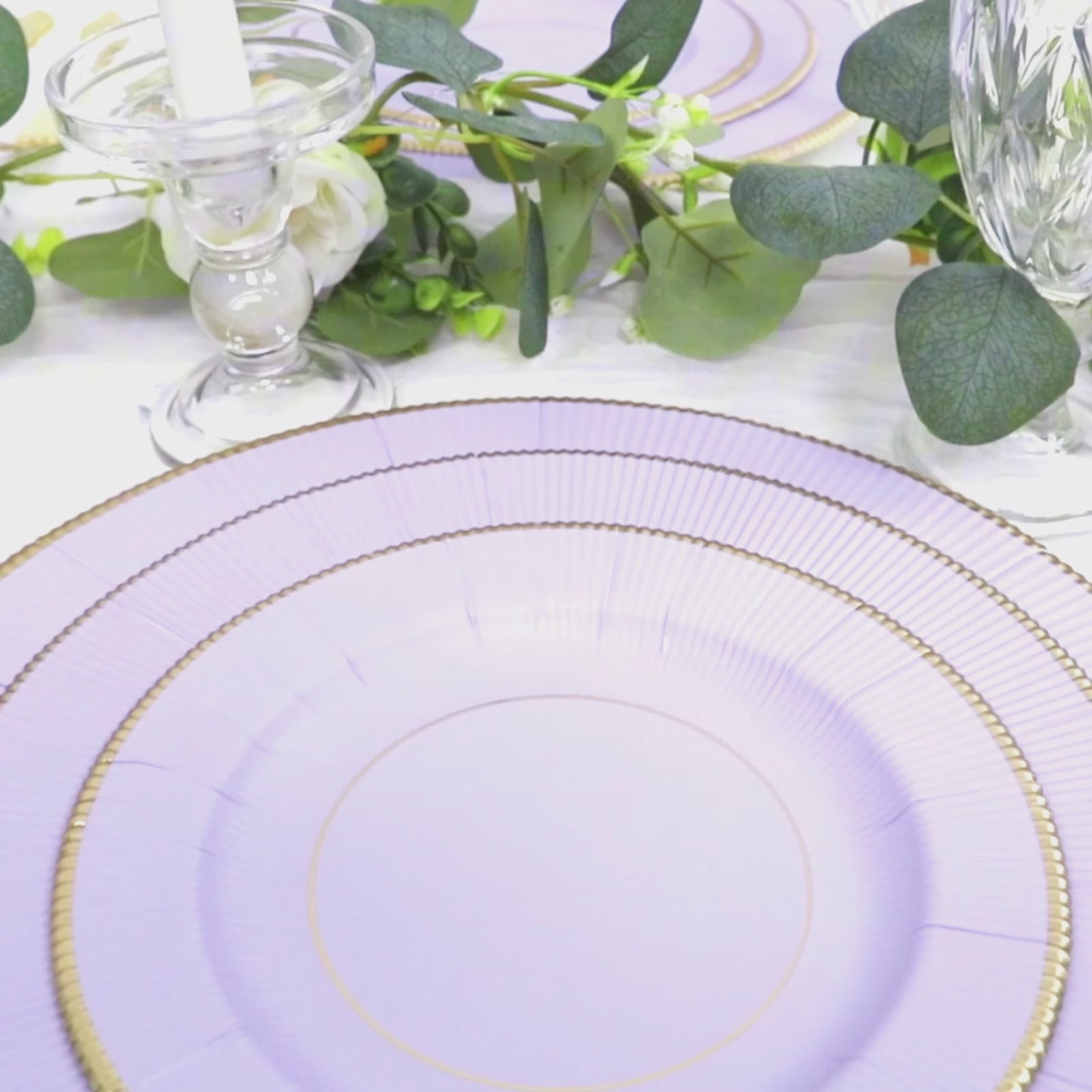 Disposable Round Charger Plates 13" Lavender Sunray Design with Gold Rim