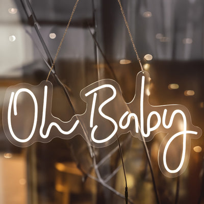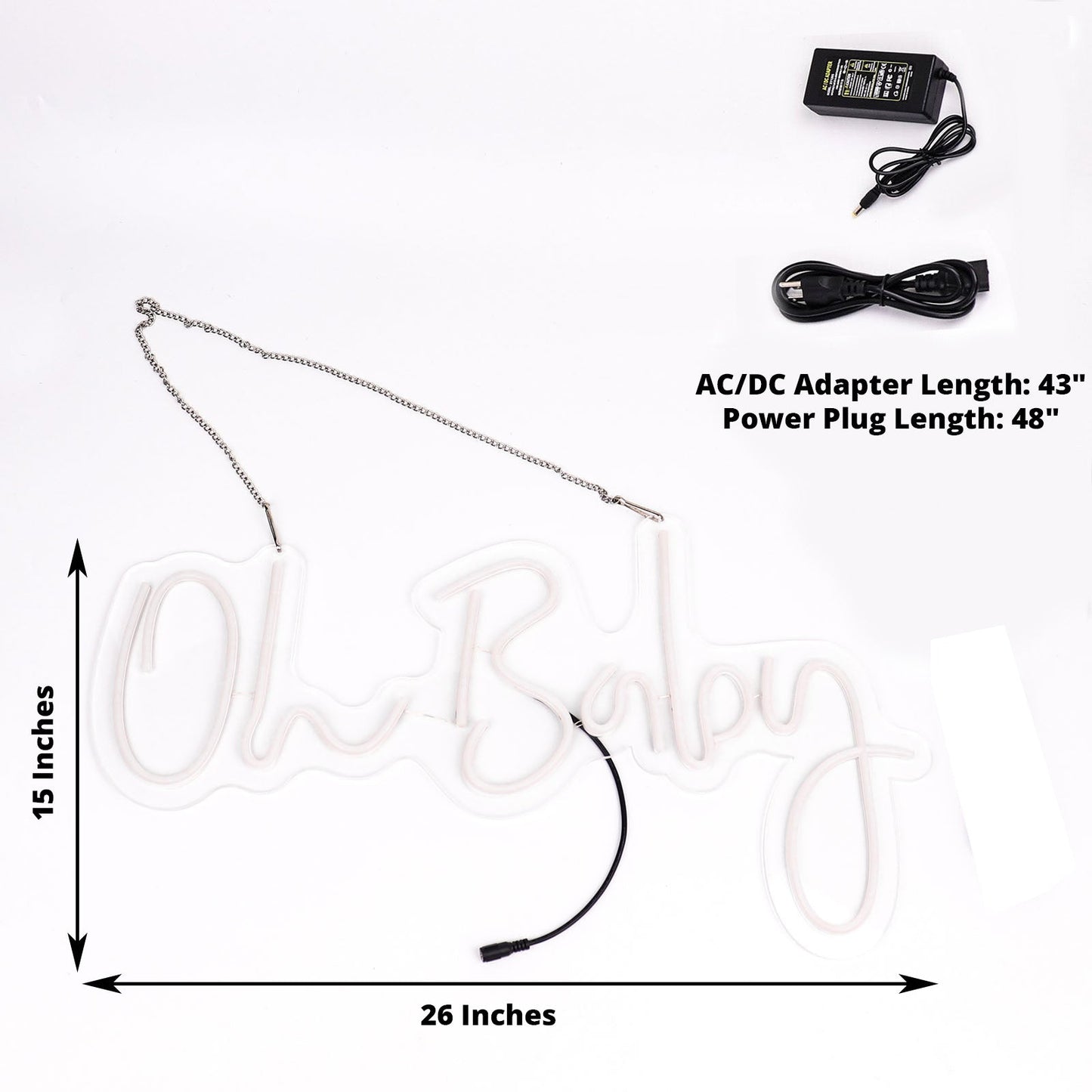 26" Oh Baby Neon Light Sign, LED Reusable Wall Décor Lights With 5ft Hanging Chain