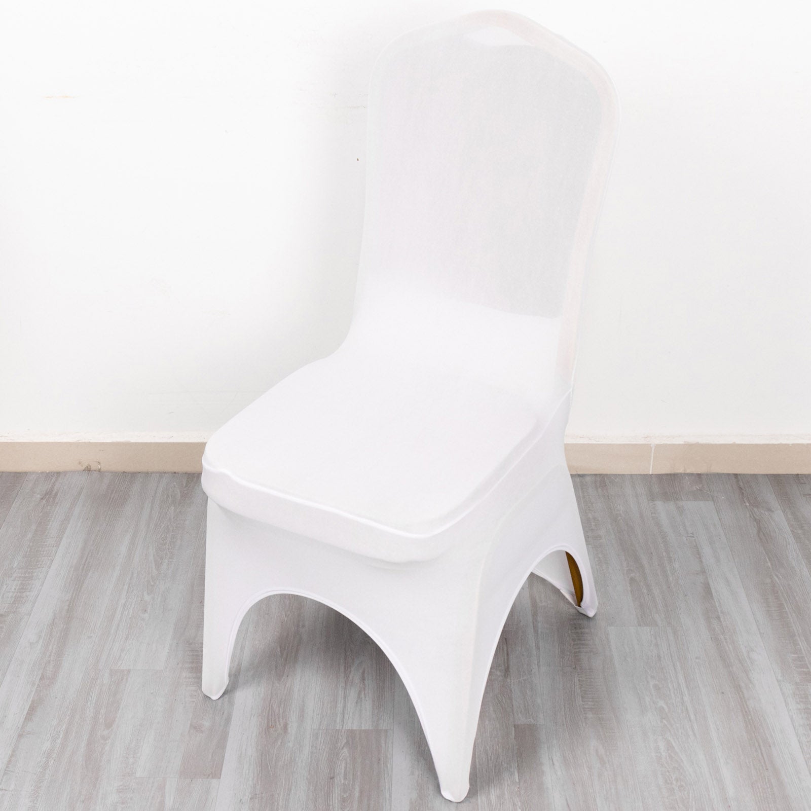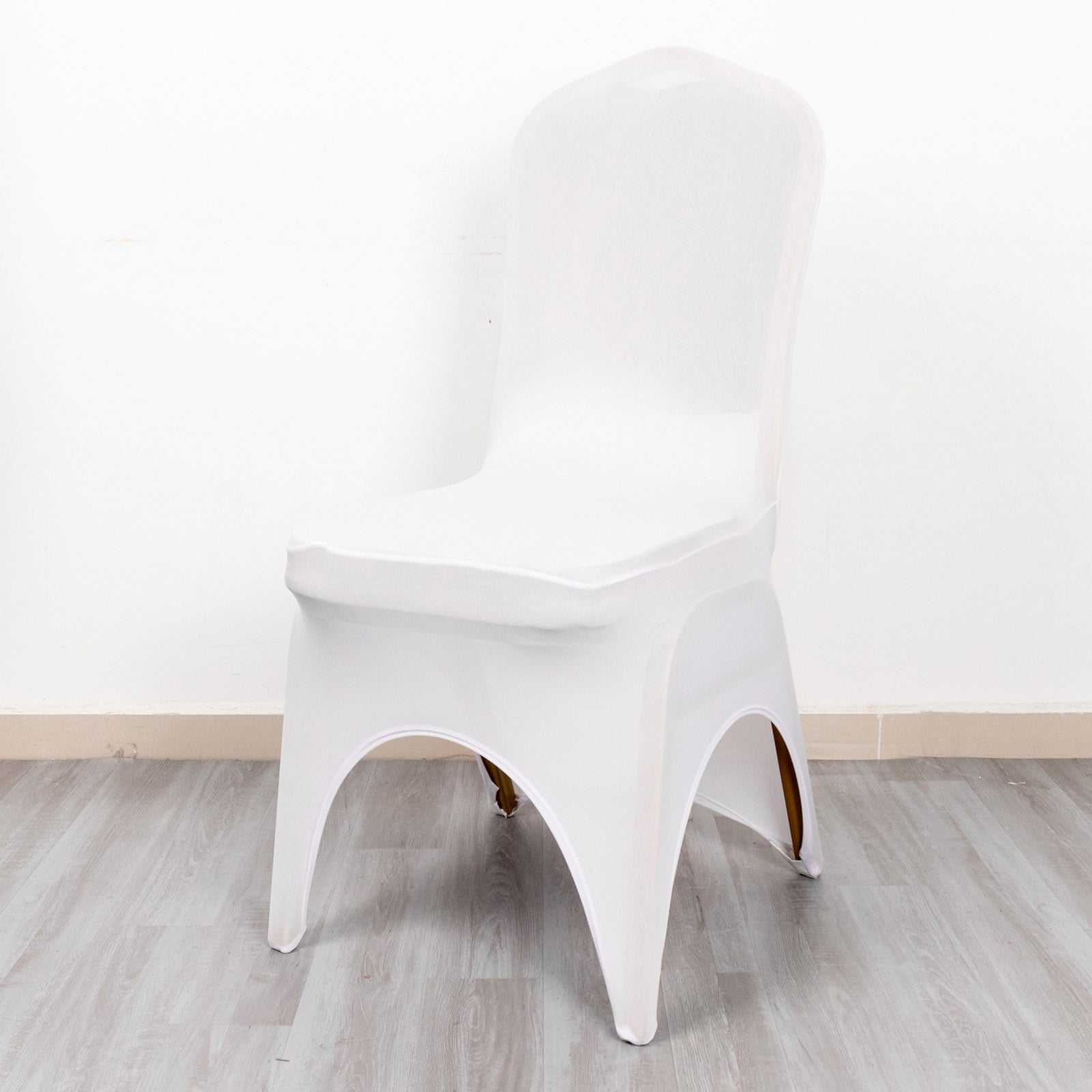 3-Way Open Arch White Premium Stretch Spandex Wedding Chair Cover, Fitted Banquet Chair Cover with Foot Pockets - 160 GSM