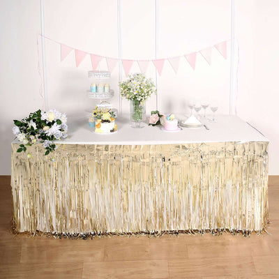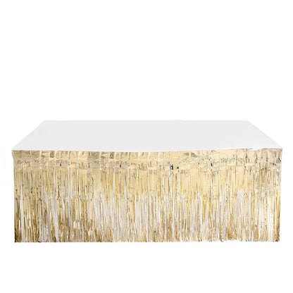 30"x9FT Metallic Foil Fringe Table Skirt, Tinsel Table Skirt - Champagne