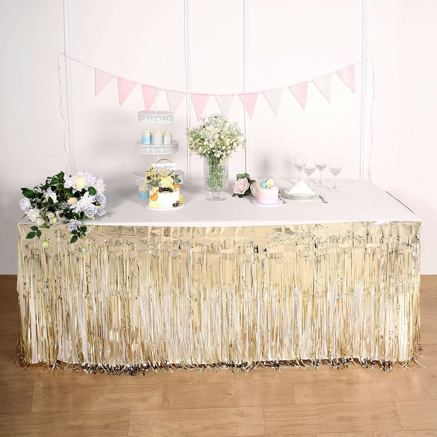 Using a table skirt like the Champagne Metallic Foil Fringe Table Skirt enhances your event's aesthetic. It adds elegance and sophistication to any table setting. Guests notice the attention to detail, making your event feel more polished and professional.