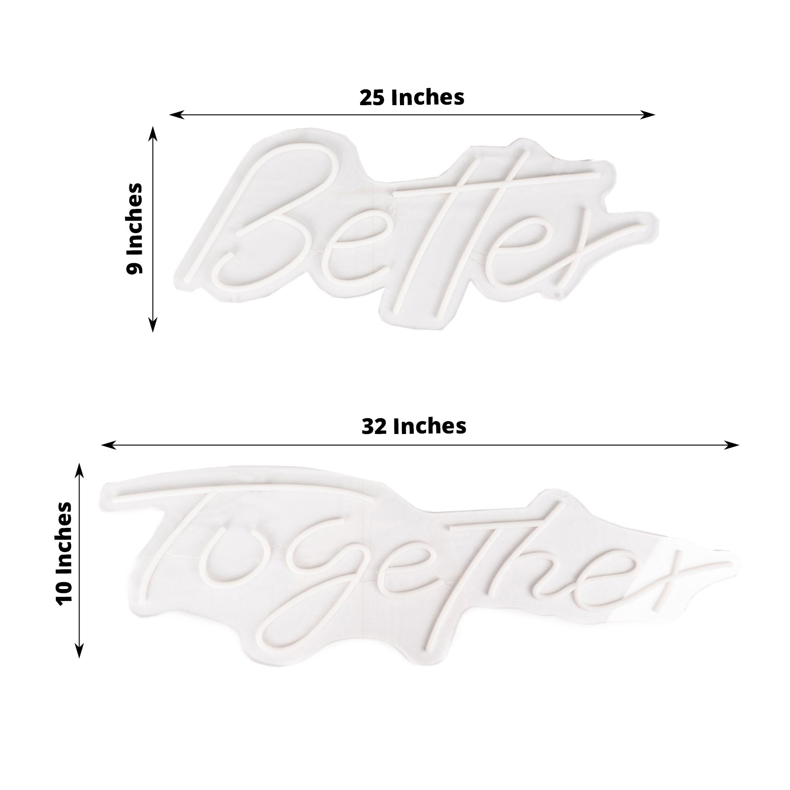 Illuminate your space with the 32" Better Together LED Neon Light Sign. This sign radiates warmth. Its soft white glow enhances any room's ambiance. Perfect for a cozy night in or a festive gathering.