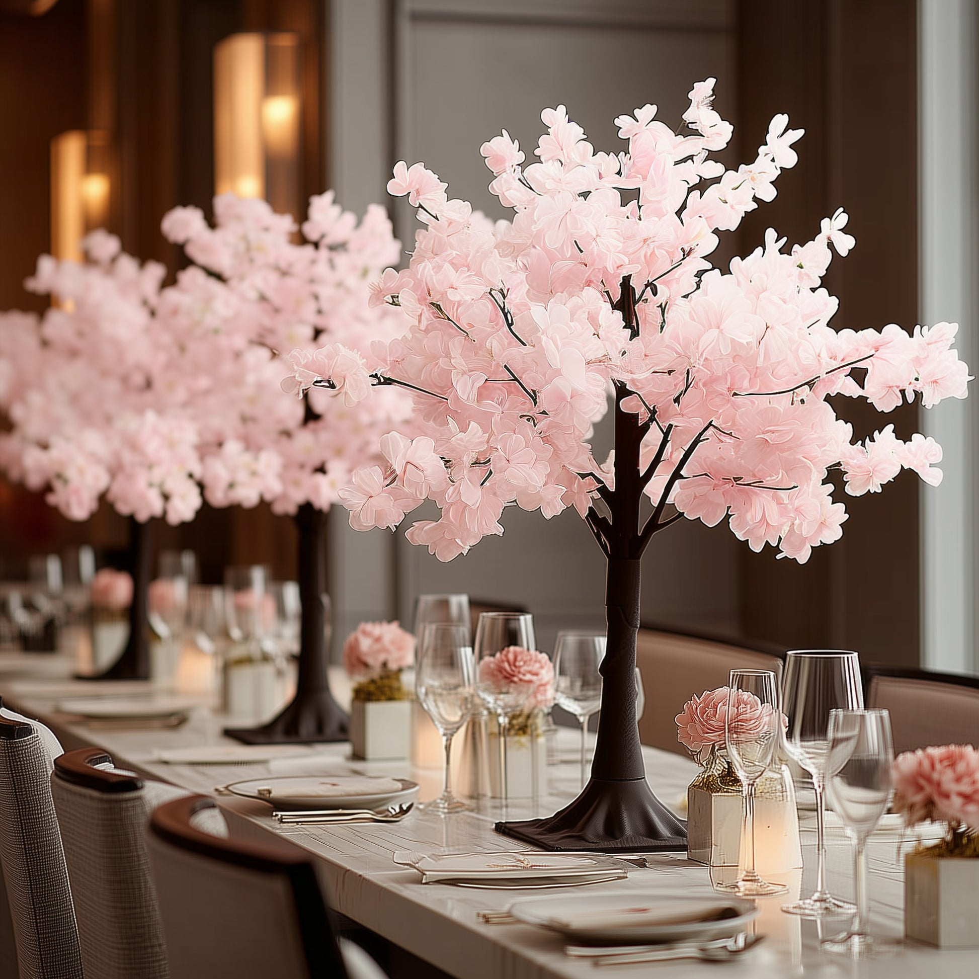 These silk cherry blossom trees are perfect for DIY floral arrangements, accent displays, or as stand-alone décor. Pair with decorative elements like Chargers, Mirrors & Wood Slices to add depth and texture, or highlight with ambient lighting to enhance the blush blooms. Their realistic design ensures long-lasting beauty and practical reuse for multiple events.