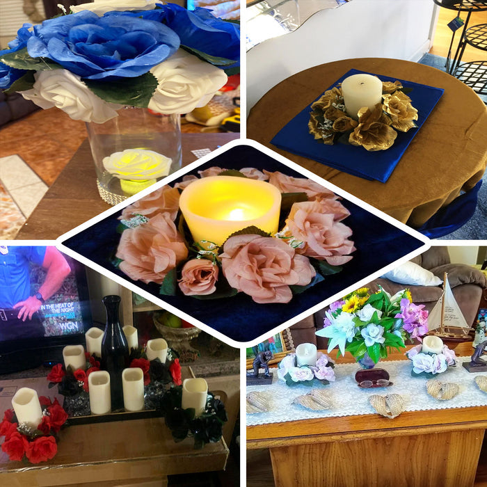 Designing your event with wreaths can create a unique atmosphere. Use our Burgundy Artificial Silk Rose Flower Candle Ring Wreaths to set the tone for your occasion. They can be the centerpiece of your table décor.