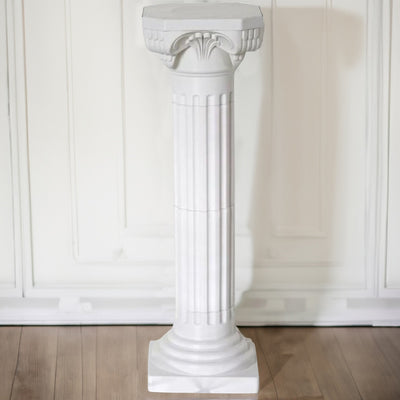 The 34" White Height Adjustable Empirical Roman Inspired Pedestal Column Plant Stand features a stunning design. This piece captures the essence of ancient Roman architecture. Its elegant silhouette adds sophistication to any event decor.