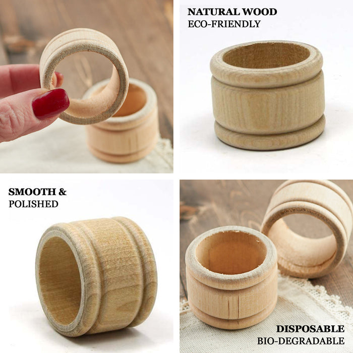 4 Pack | Eco Friendly Natural Wooden Napkin Holder Rings, Disposable