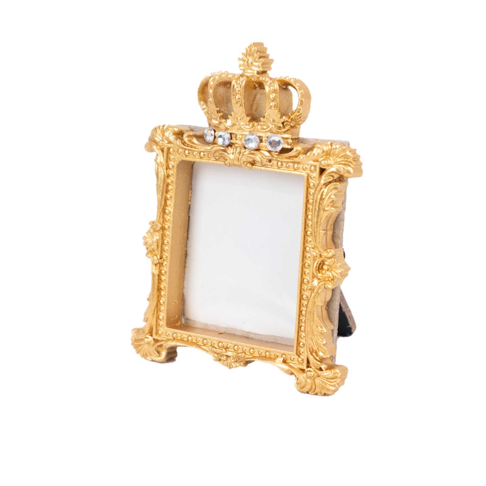 The Gold Resin Royal Crown Square Picture Frame features an exquisite design. Its royal crown motif adds a touch of elegance to any setting. Crafted from luxurious gold resin, it radiates sophistication and charm.