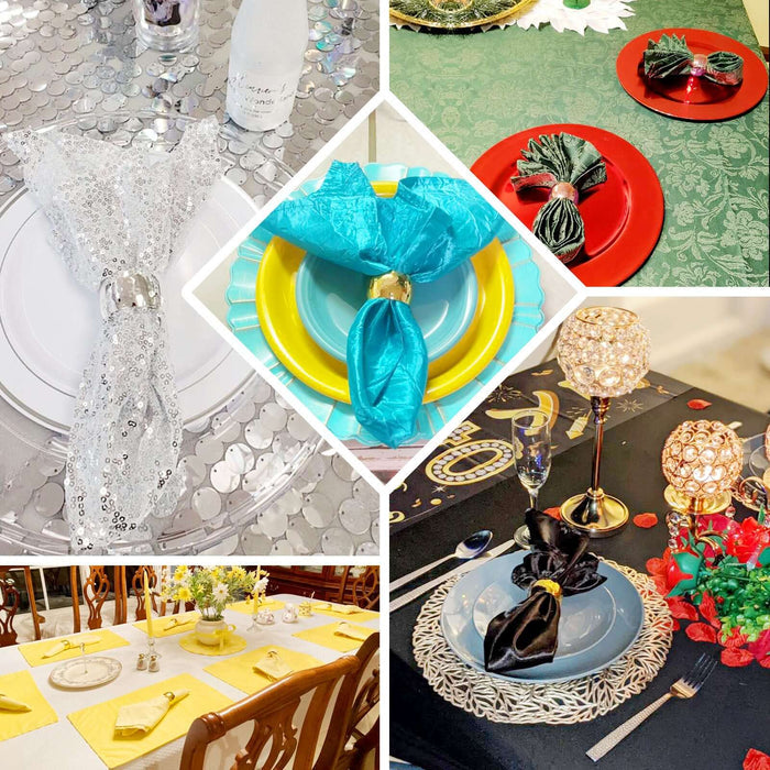 Incorporate metallic napkin rings into your table decor for a sophisticated touch. Pair them with premium material tablecloths for an elegant dining experience. They work beautifully with velvet flocking tablecloths or even burlap lace tablecloths.