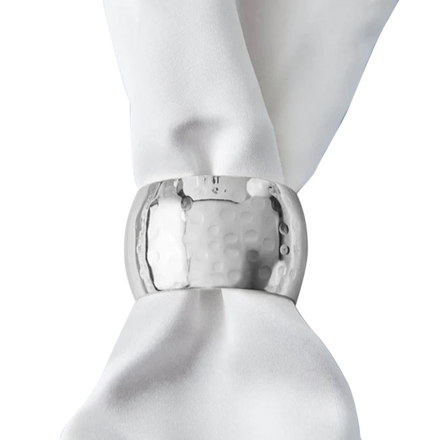 4 Pack | Metallic Silver Hammered Pattern Metal Napkin Rings