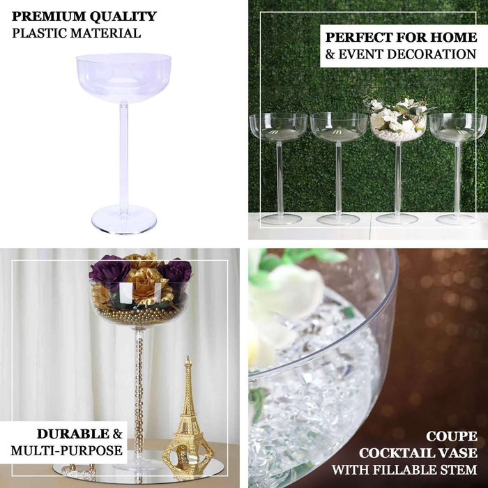 4-Pack Plastic Flower Vases Champagne Glass Design Clear - Fillable Long Stem Centerpieces for Events 18"