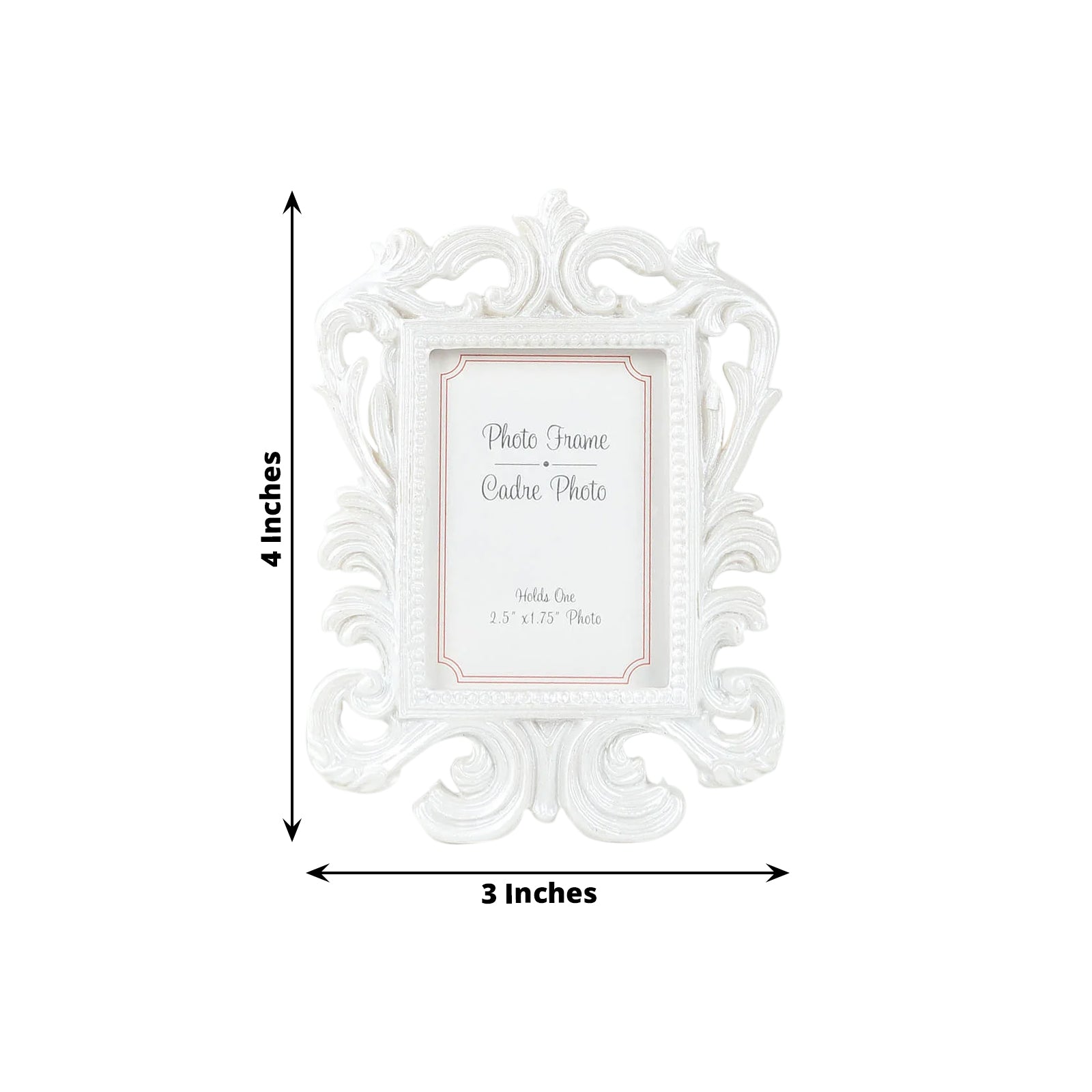 4 Pack White Resin Vintage Baroque Photo Frames, Rectangle Mini Picture Frame Party Favor Wedding Place Card Holders - 4"x3"