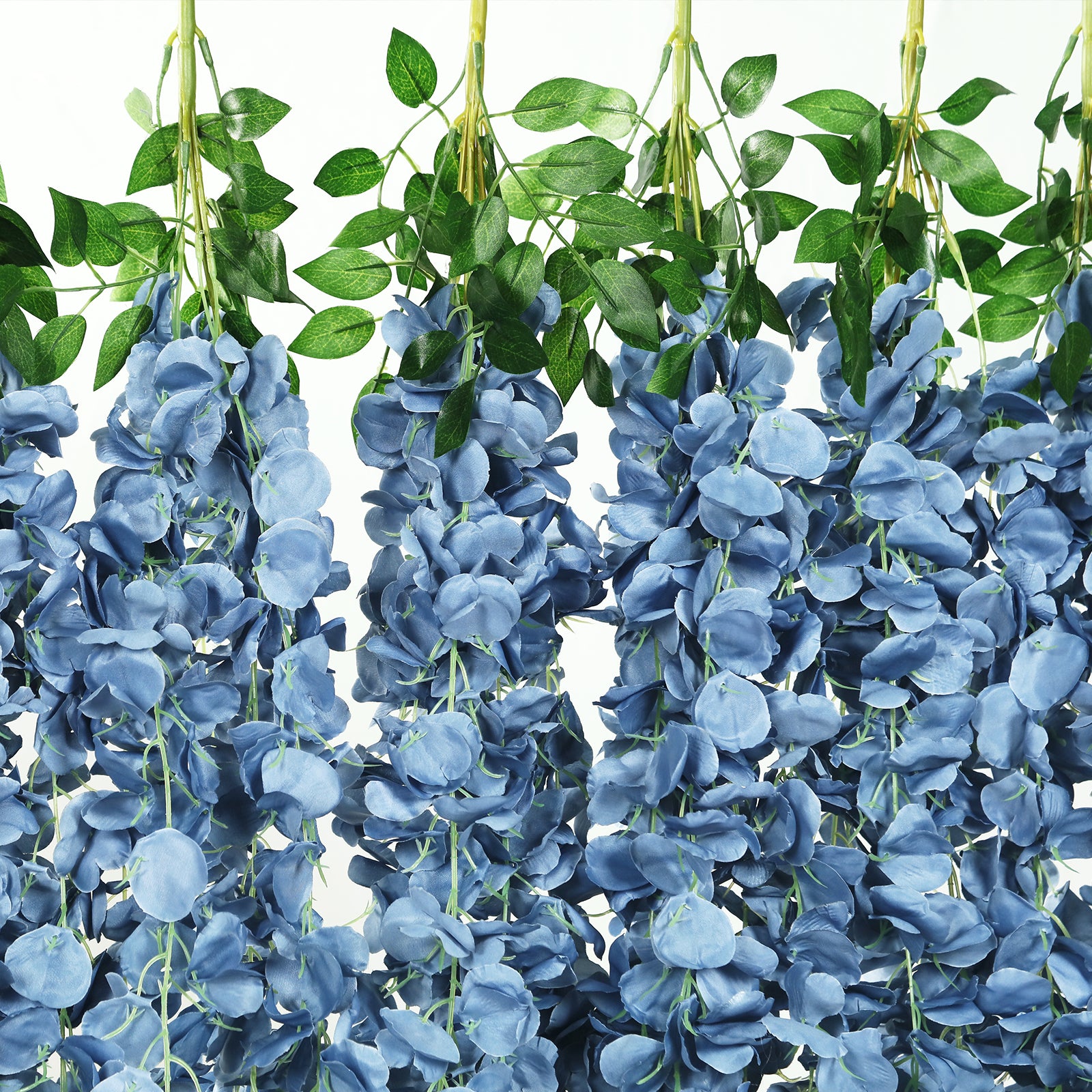 Dusty Blue Artificial Silk Hanging Wisteria Flower Garland Vines