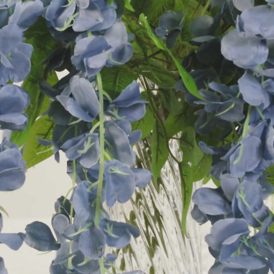 Bring timeless elegance to your events with our Dusty Blue Artificial Silk Hanging Wisteria Flower Garland Vines. Featuring five full strands in one bush, each measuring 42 inches, this lifelike wisteria captures the beauty of nature while offering lasting charm.