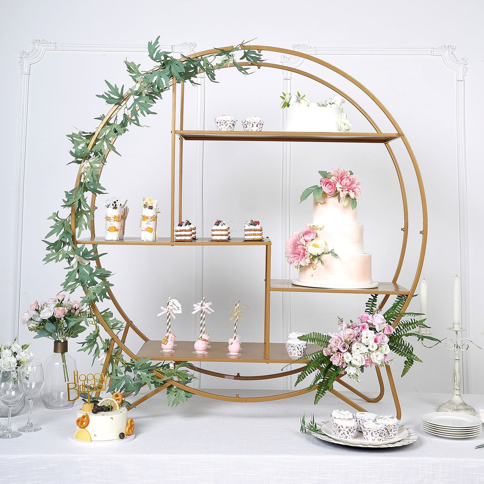 4ft Large Gold Metal Round Cake Dessert Display Stand, Wedding Arch Backdrop, Balloons Rack, Modern Bookcase