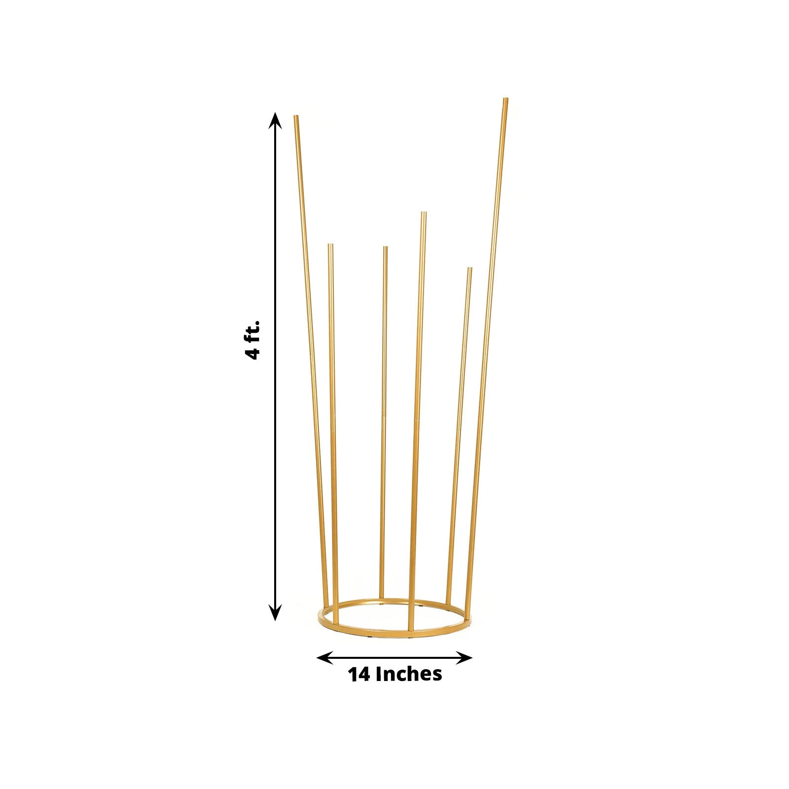4ft Tall Gold Metal Single Stem Flower Vase in Minimalist Style, 6-Tubes Table Centerpiece Stand for Floral Arrangements with Hollow Round Base