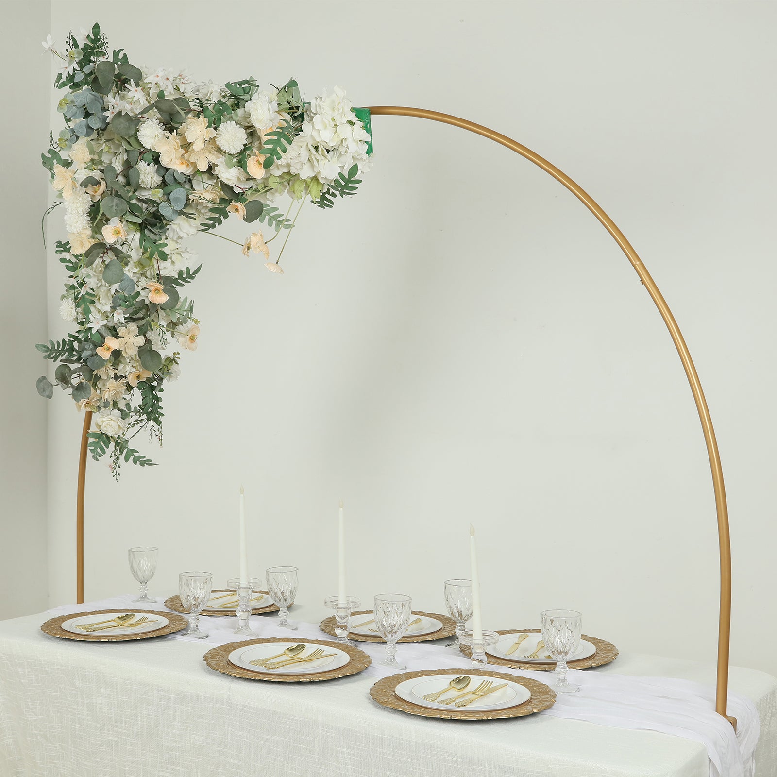 Crafted from durable, high-quality metal, this table arch offers exceptional stability while maintaining a lightweight, easy-to-move structure. It securely clamps to most table edges, giving you peace of mind as you design and decorate for your big day. The soft gold finish blends beautifully with any theme, adding a hint of luxury to both casual and formal settings. Think cascading artificial flowers and greenery, hanging glass votives, or playful balloon garlands — the creative possibilities are endless.