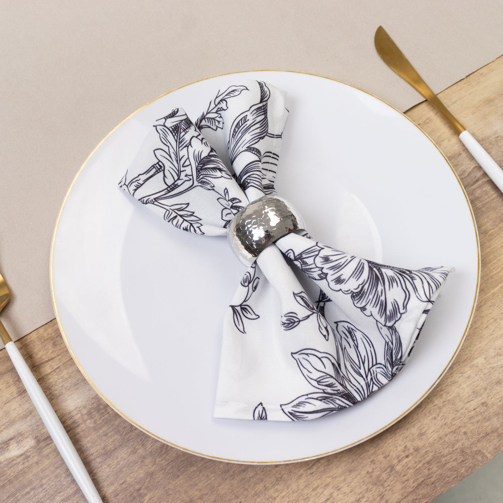 5-Pack French Toile Polyester Cloth Napkins – 17"x17" Black and White Reusable Table Napkins in Floral Design for Events & Dining