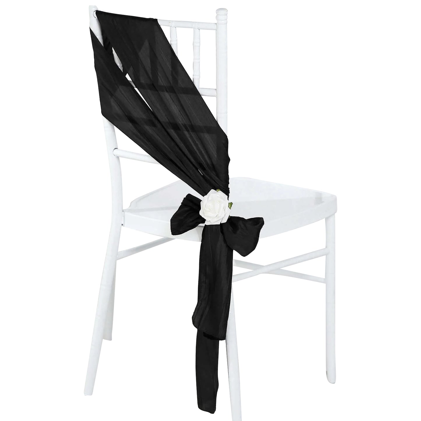 The versatility of our Black Accordion Crinkle Taffeta Chair Sashes is unmatched. They can be paired with various chair covers to create stunning visual effects. The black color complements any color scheme, making them a must-have for your event.