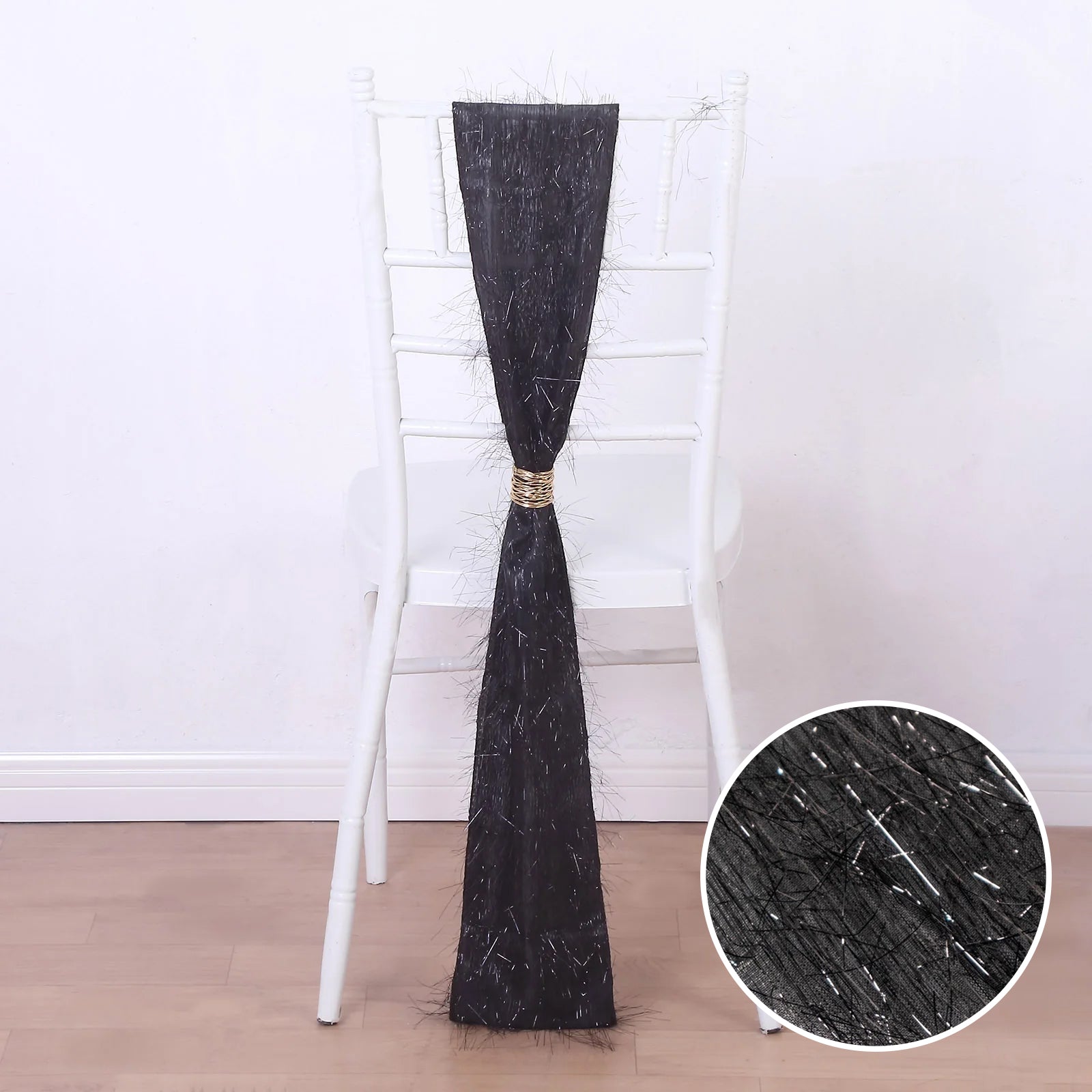 5 Pack Black Metallic Fringe Shag Tinsel Chair Sashes, Shimmery Polyester Chair Sashes - 6"x108"