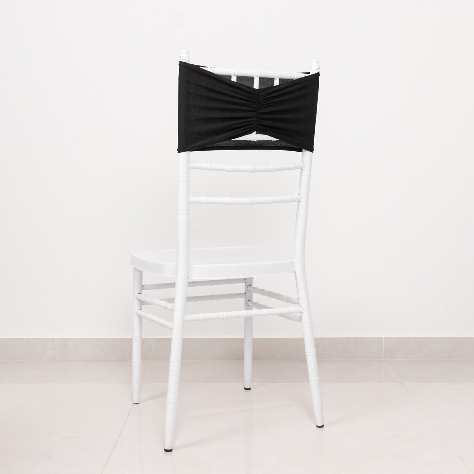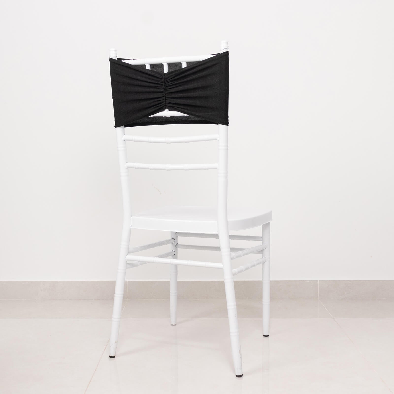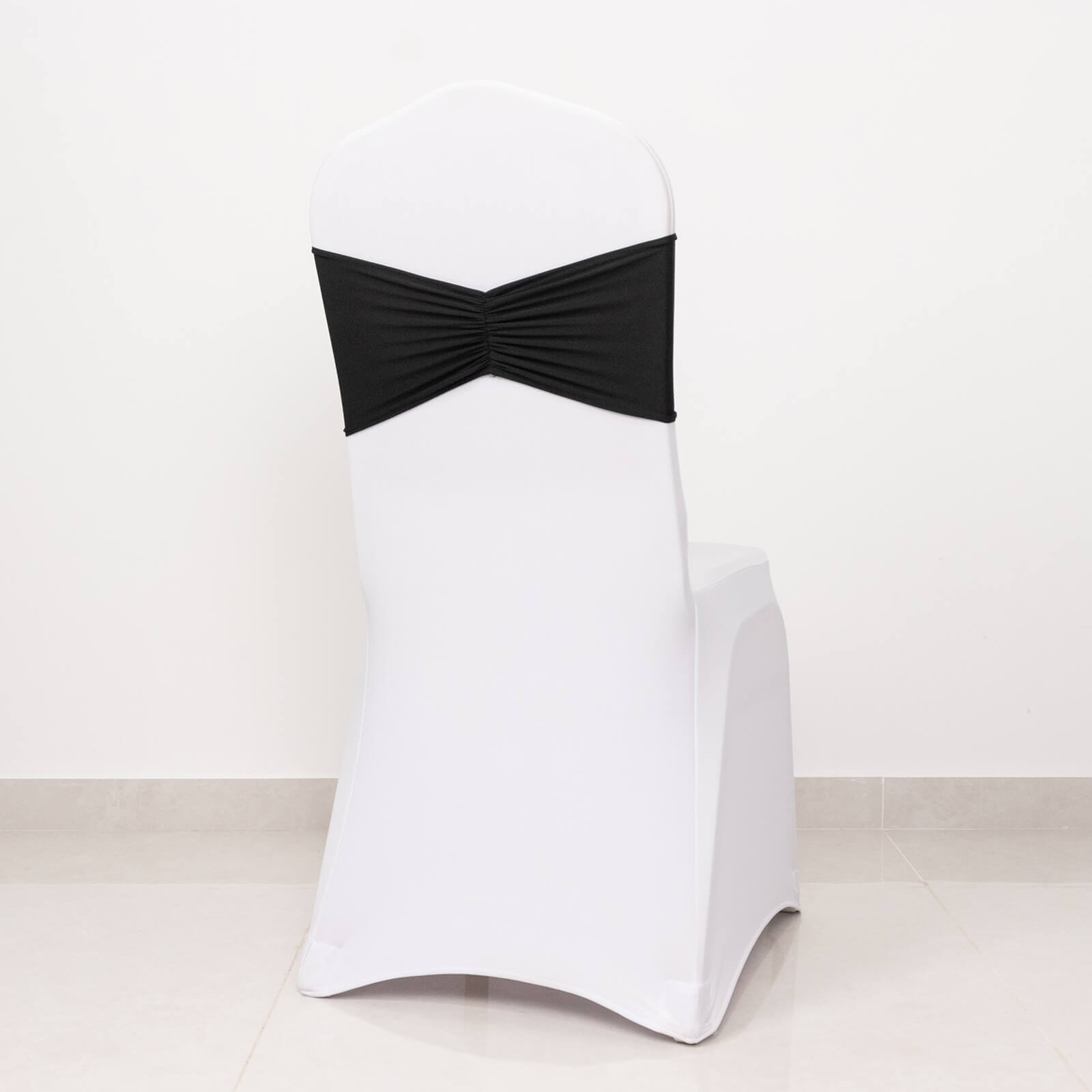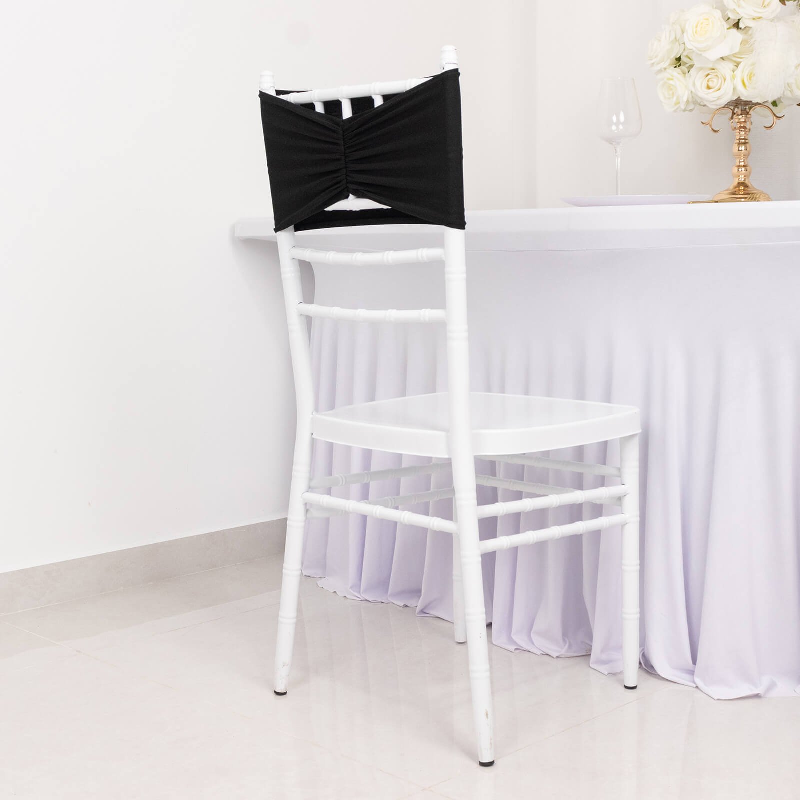 5 Pack Black Wide Ruffled Fitted Spandex Chair Sash Band - 8"x13"