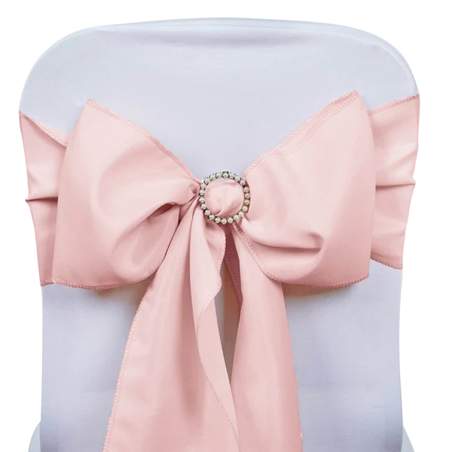 These blush polyester chair sashes are not just for chairs. They can be creatively used in various ways throughout your event. Tie them around cocktail tables or incorporate them into gift wraps for a festive touch.