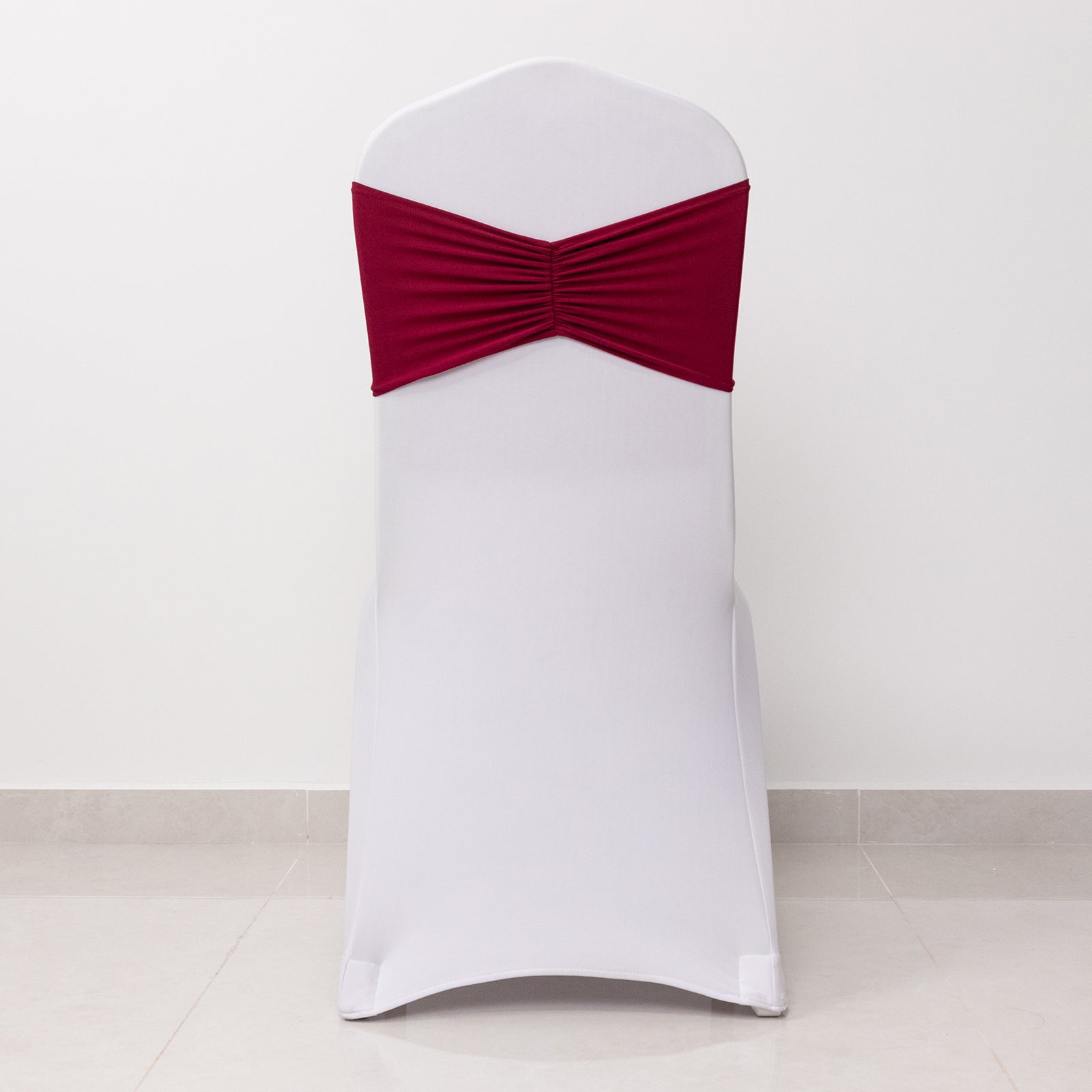Durability is a standout feature of the Burgundy Ruffled Spandex Chair Sash Band. Made from robust spandex, these sashes maintain their shape and sheen over time. They withstand multiple uses without losing their charm.