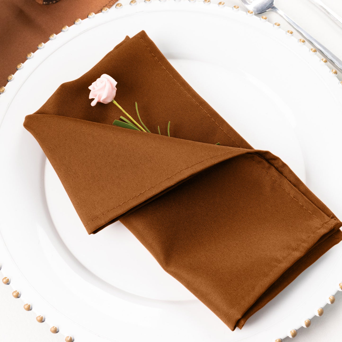 5 Pack Cinnamon Brown Cloth Napkins with Hemmed Edges, Reusable Polyester Dinner Linen Napkins - 20"x20"