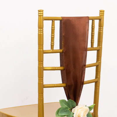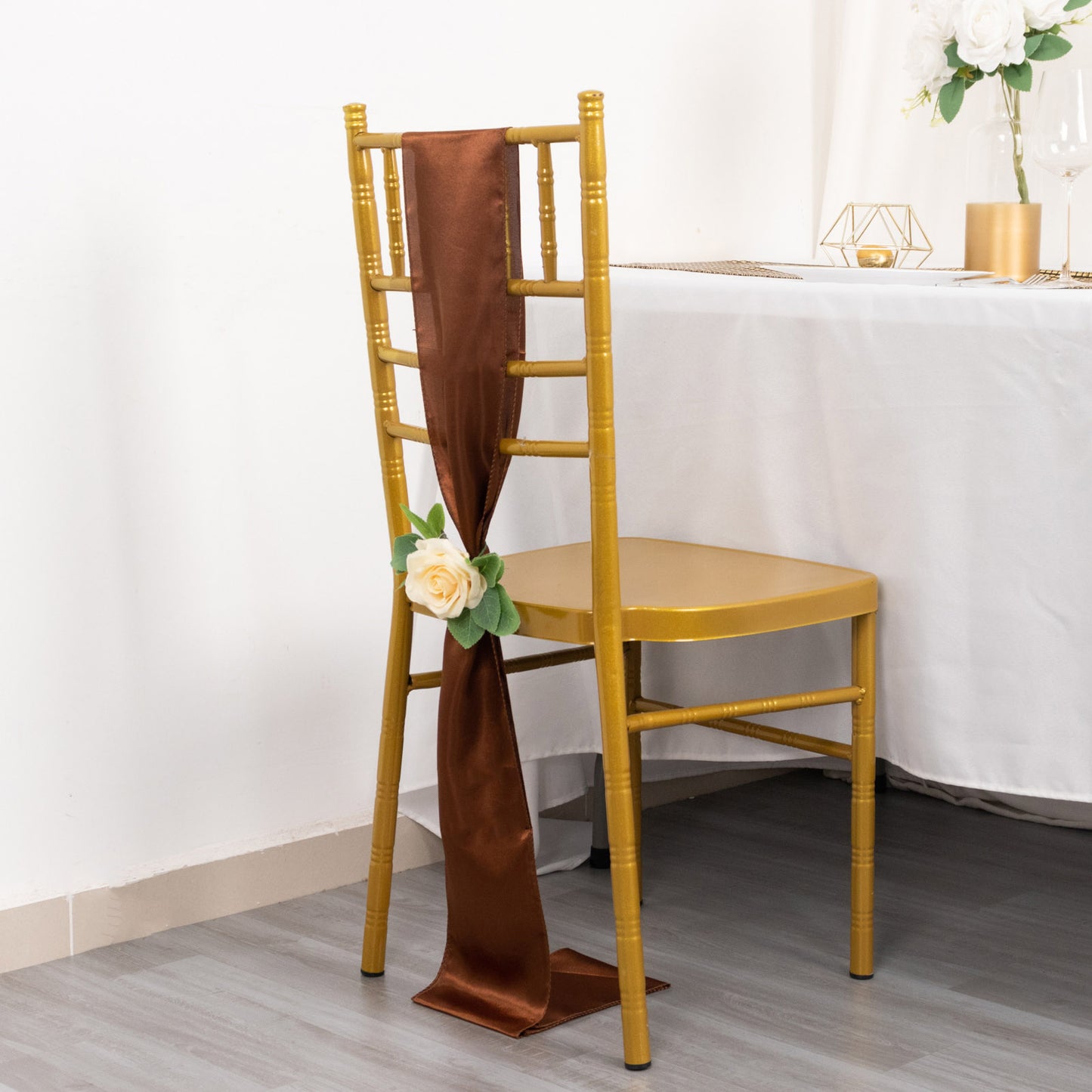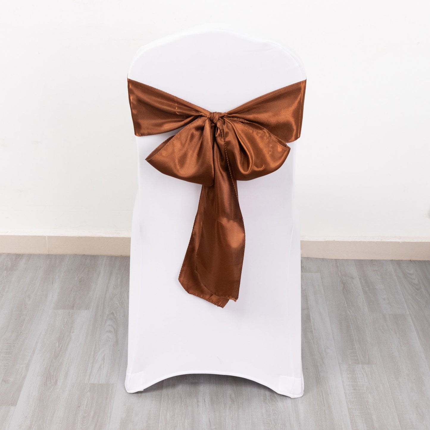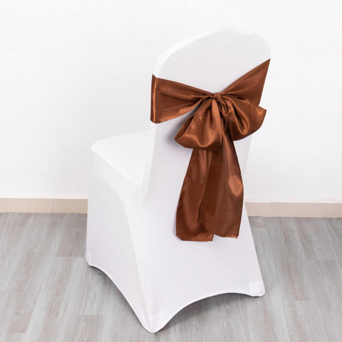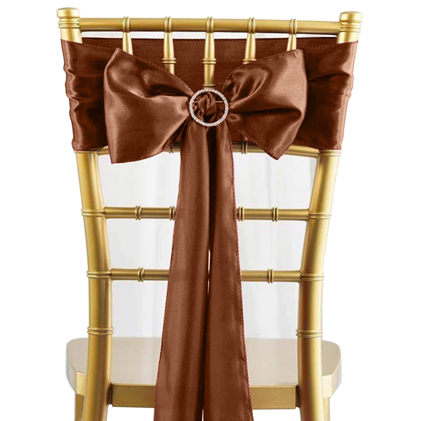 5 Pack Cinnamon Brown Satin Chair Sashes, Chair Bows - 6"x106"