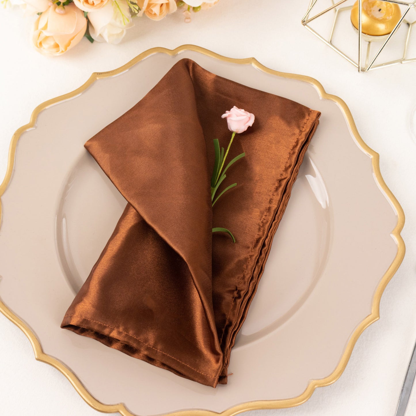 5 Pack Cinnamon Brown Satin Cloth Napkins with Hemmed Edges, Reusable Dinner Napkins - 20"x20"