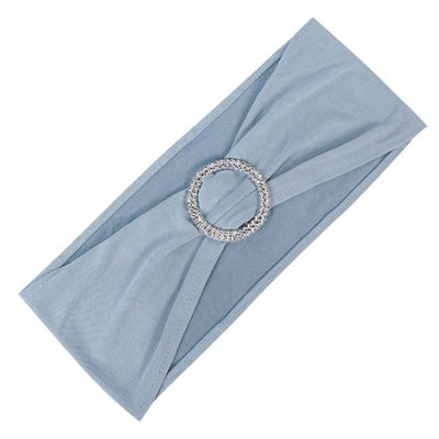 5 Pack | Dusty Blue Spandex Stretch Chair Sashes with Silver Diamond Ring Slide Buckle | 5"x14"