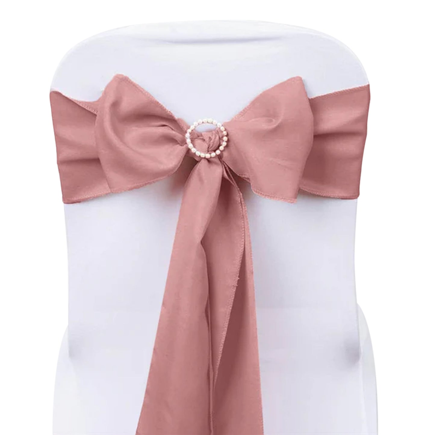 Versatile in design, these sashes can be styled in multiple ways. Tie them in a classic bow for a formal look or let them hang loosely for a more relaxed vibe. They are perfect for banquet chairs, folding chairs, and more. The dusty rose hue adds a romantic feel to your setting.