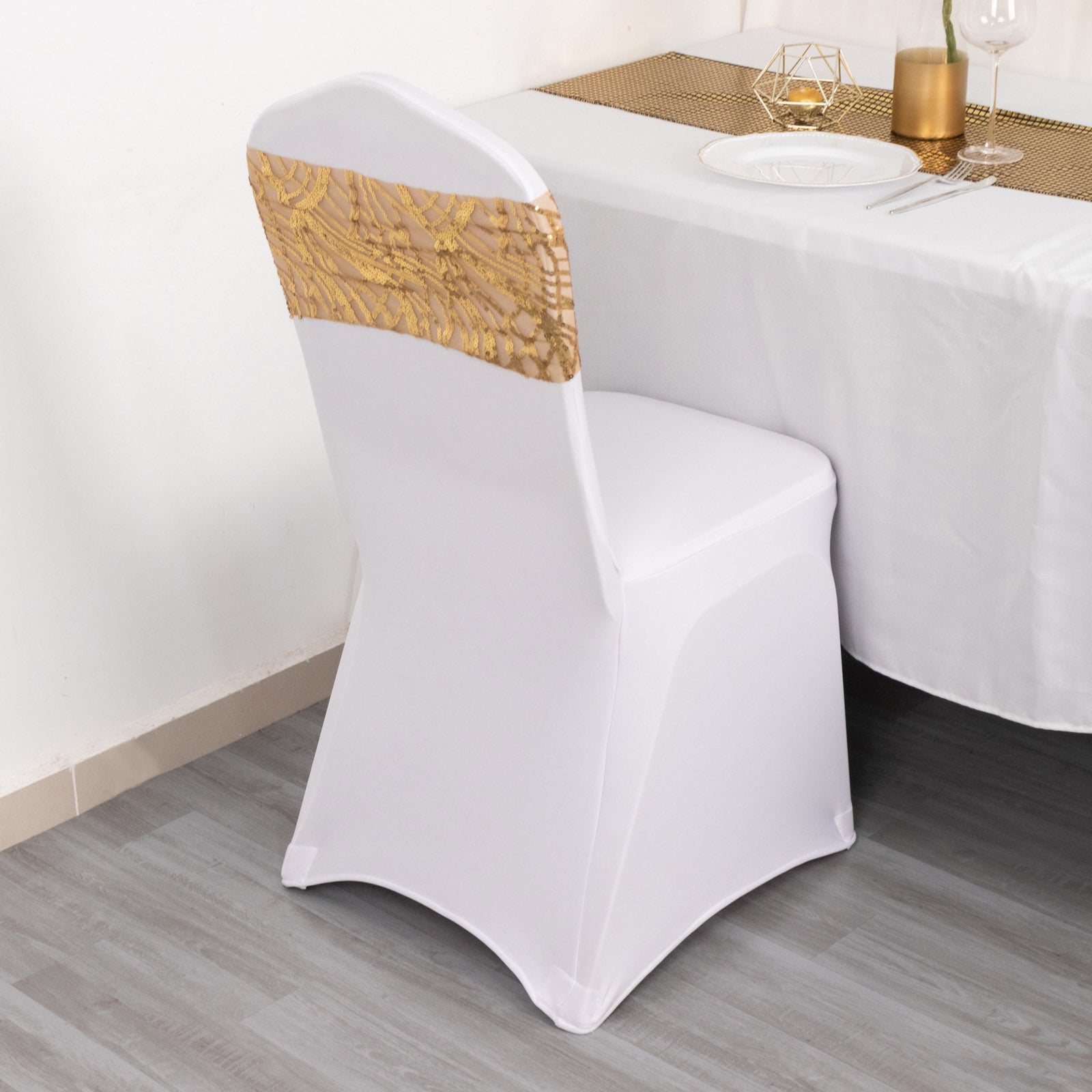 5 Pack Gold Wave Chair Sash Bands With Embroidered Sequins