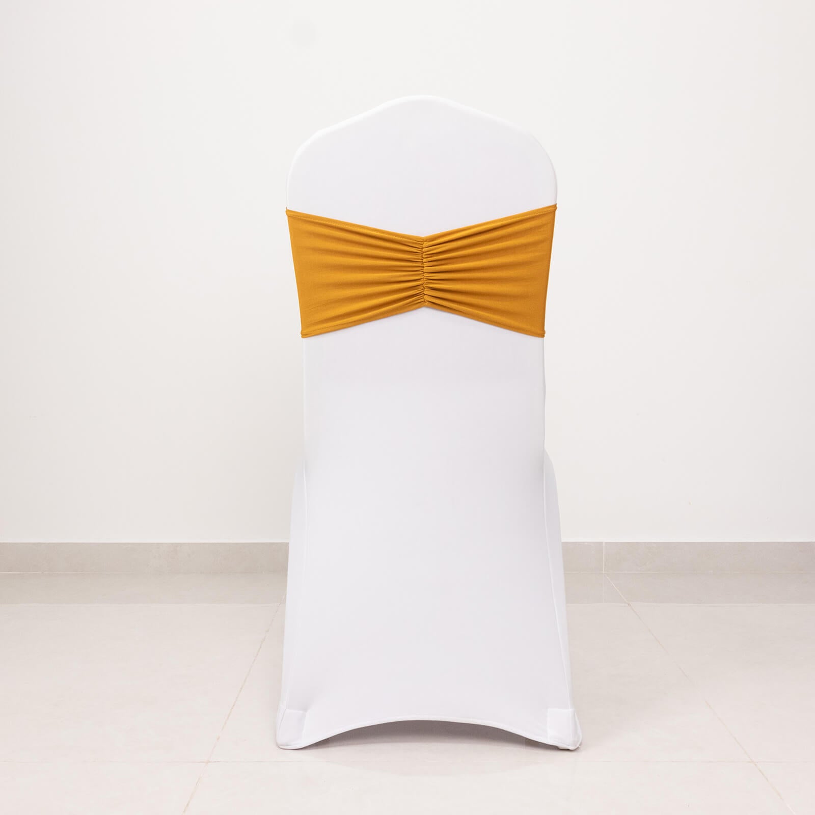 5 Pack Gold Wide Ruffled Fitted Spandex Chair Sash Band - 8"x13"