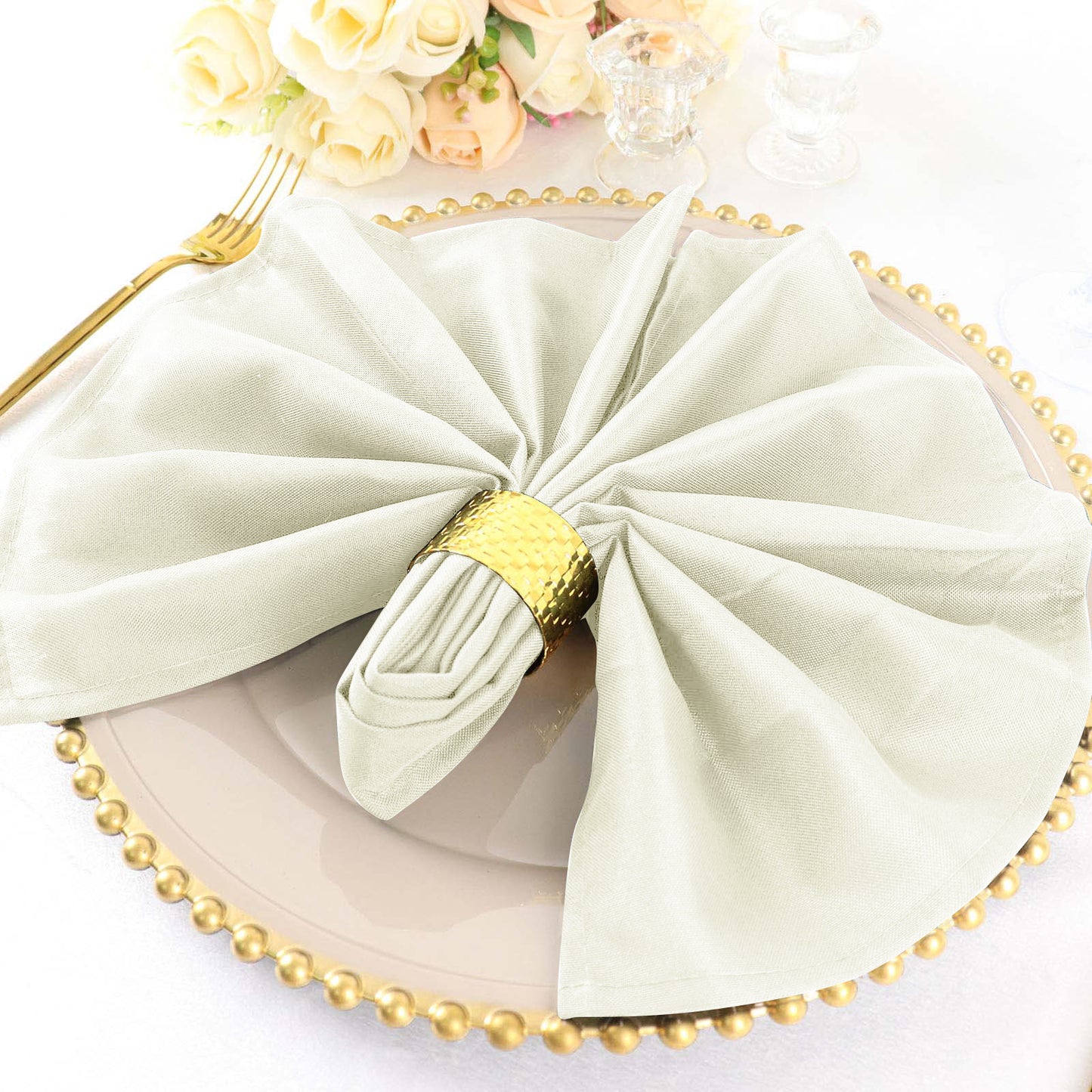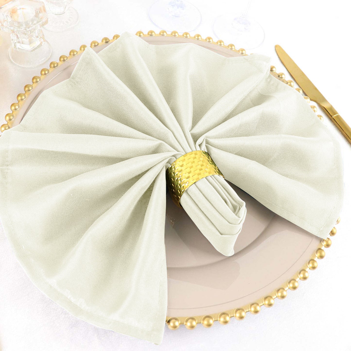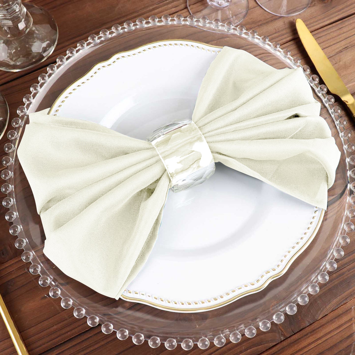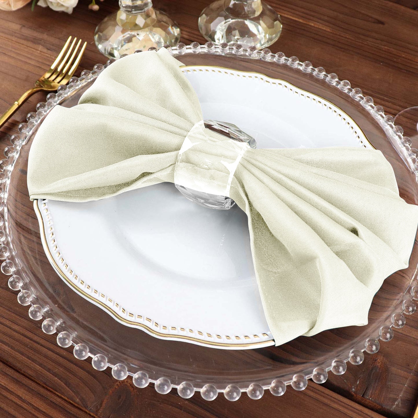 5 Pack Ivory Cloth Napkins with Hemmed Edges, Reusable Polyester Dinner Linen Napkins - 20"x20"