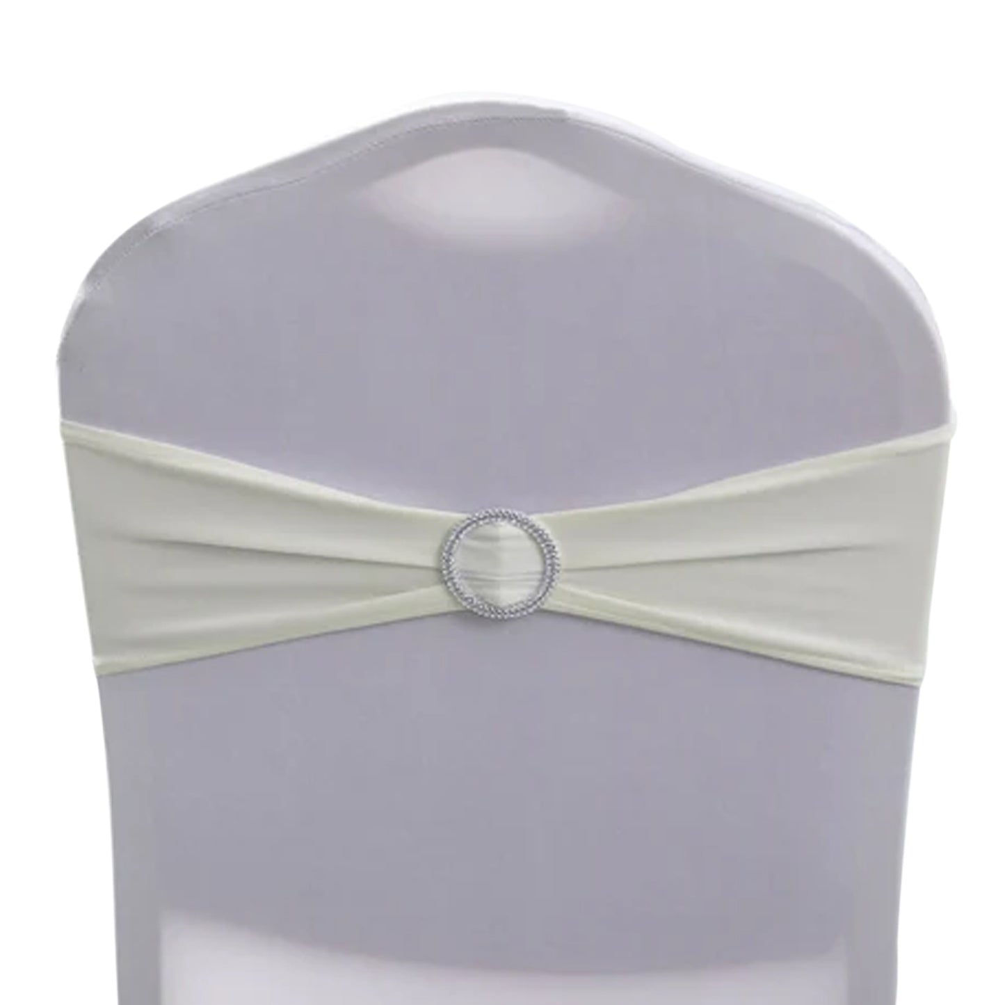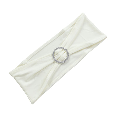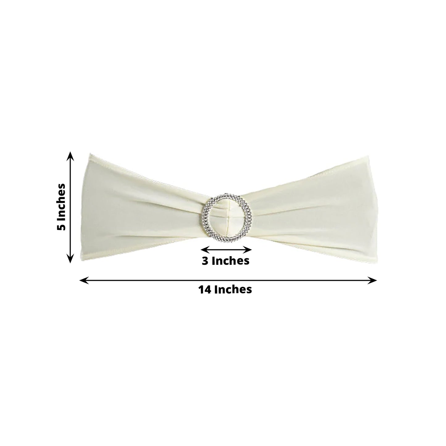 5 Pack | Ivory Spandex Stretch Chair Sashes with Silver Diamond Ring Slide Buckle | 5"x14"