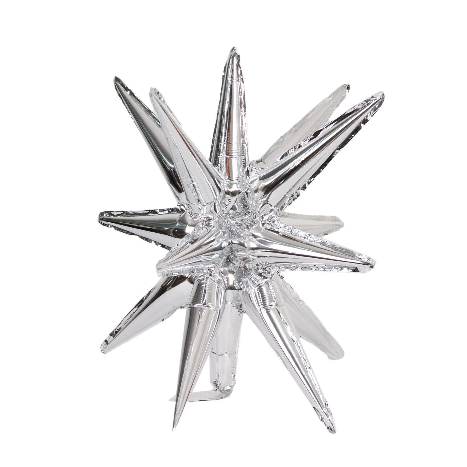 Transform your event with our 5 Pack Large Metallic Silver Starburst Foil Balloons. These stunning 14-point balloons add a celestial touch to any celebration. Their unique design captures attention and creates a magical atmosphere, making them ideal for weddings, birthdays, and other special occasions.