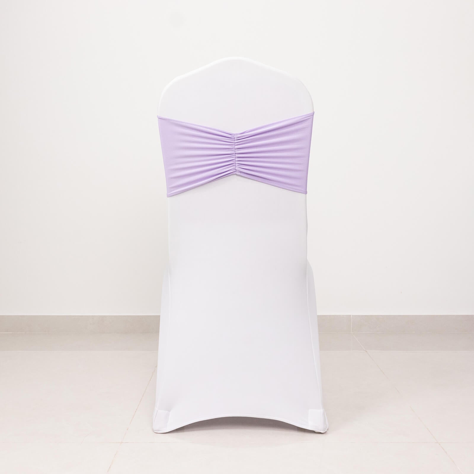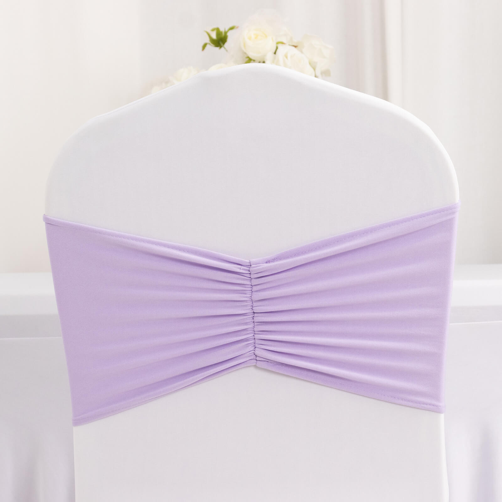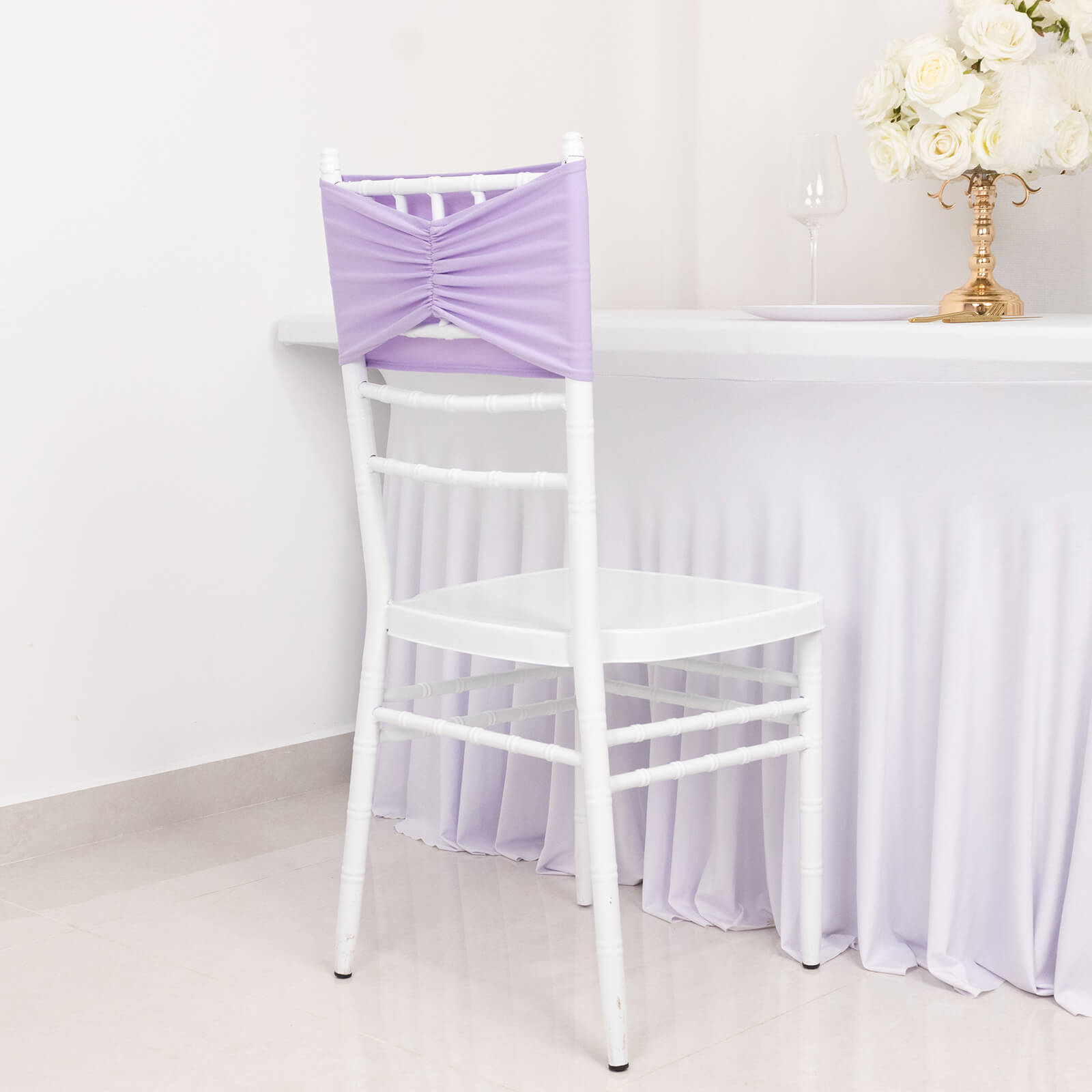 5 Pack Lavender Lilac Wide Ruffled Fitted Spandex Chair Sash Band - 8"x13"
