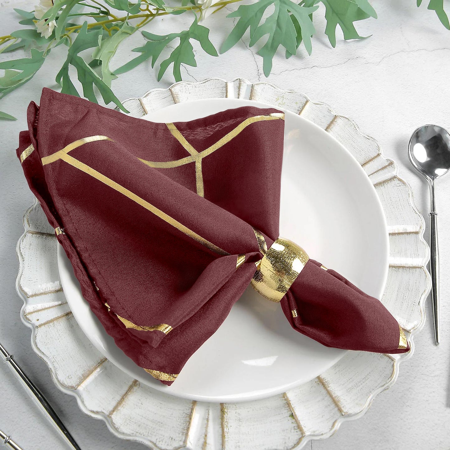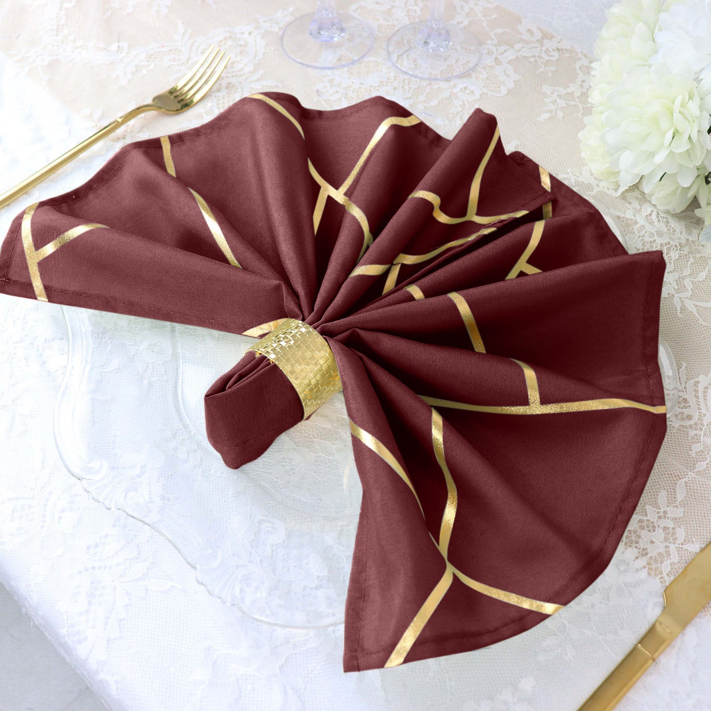 5 Pack | Modern Burgundy and Geometric Gold Cloth Dinner Napkins | 20"x20"