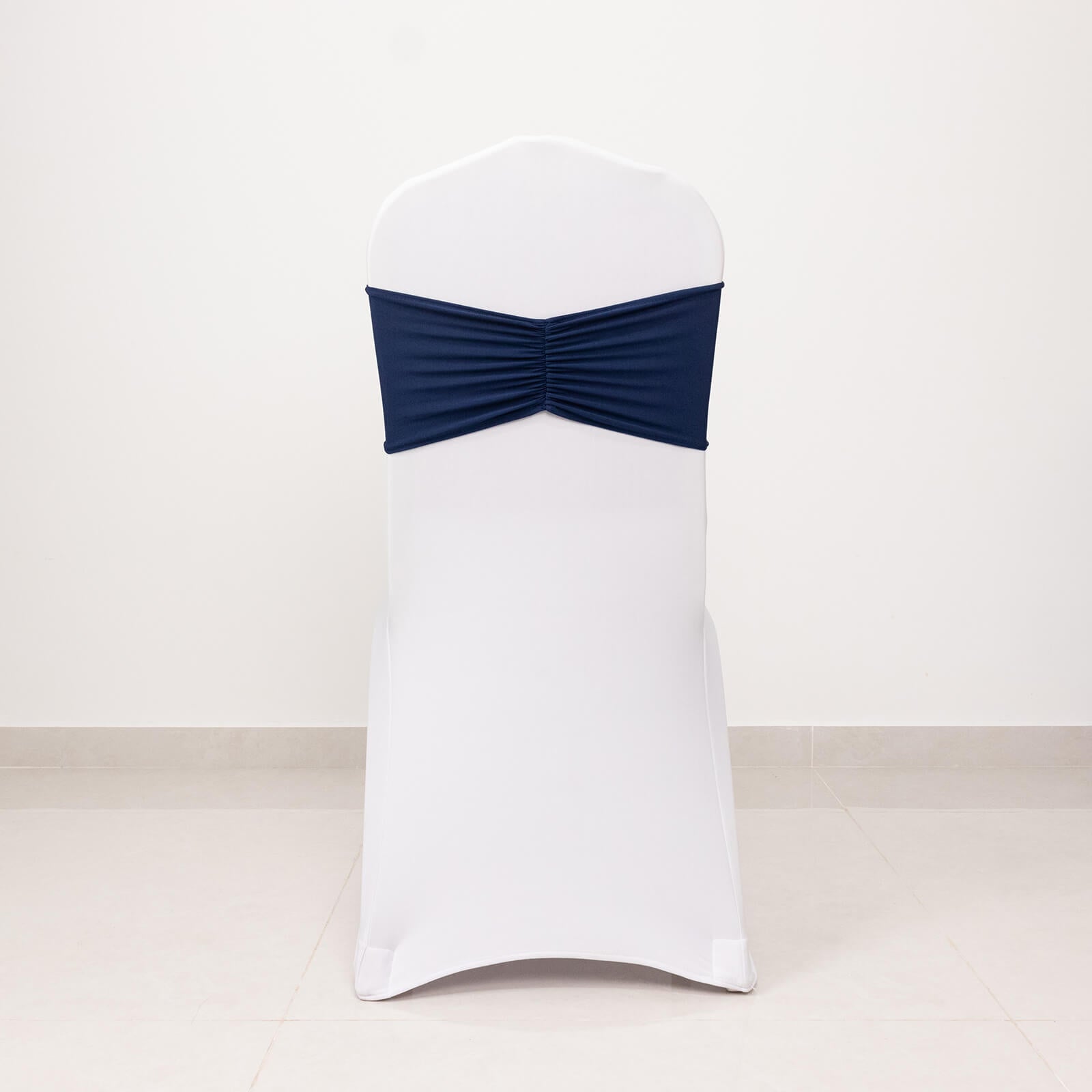 5 Pack Navy Blue Wide Ruffled Fitted Spandex Chair Sash Band - 8"x13"