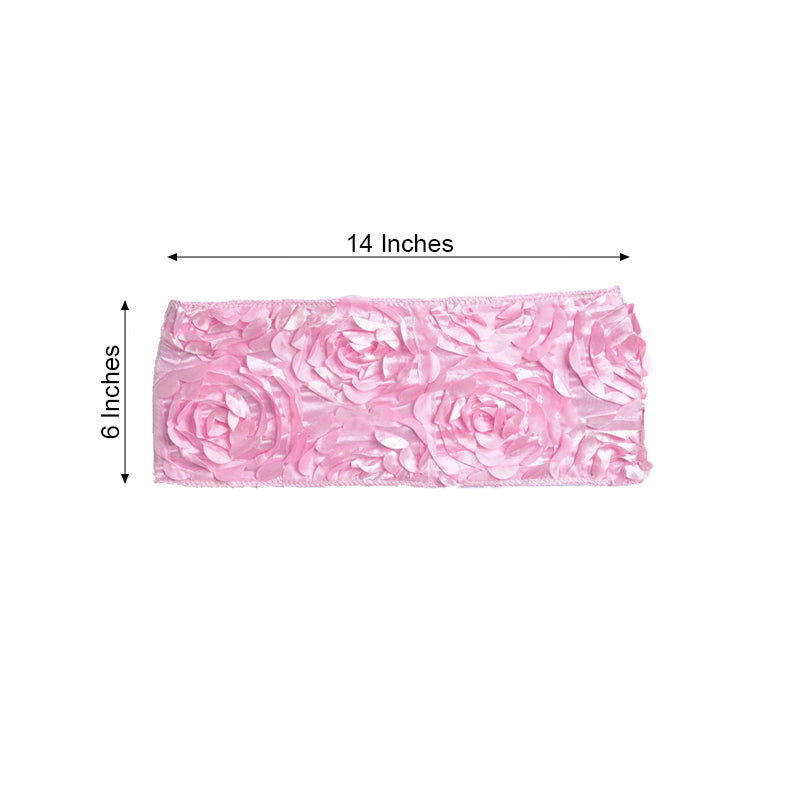 5 Pack | Pink Satin Rosette Spandex Stretch Chair Sashes | 6"x14"