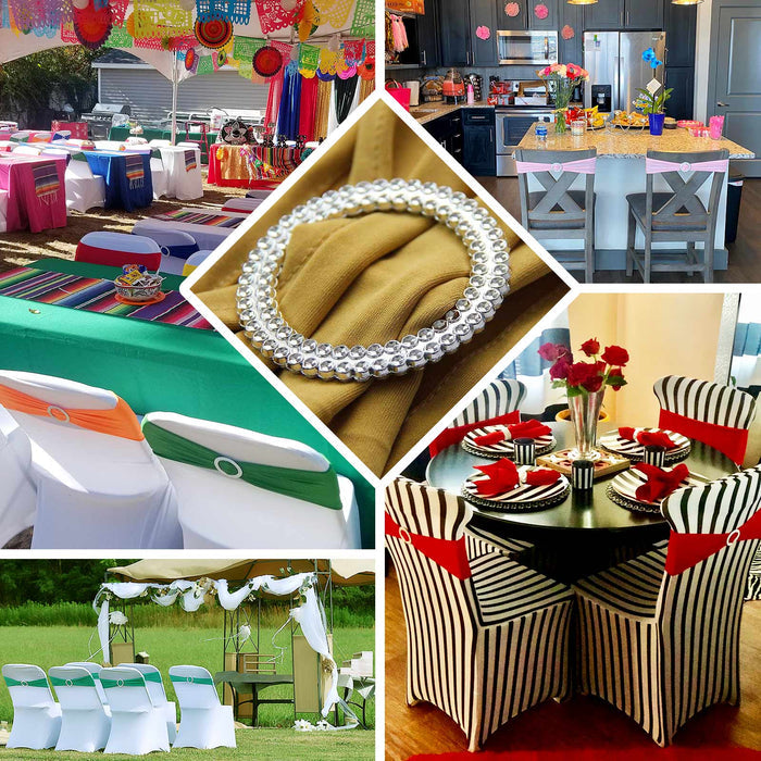 - Uses: Add Glamour and Charm to your Chairs in any Events, Hotels, Restaurants, Wedding, Party, Event, Banquet, Decoration. Also used to tie the Cocktail Tablecloth, Drapes and Gift Bows.