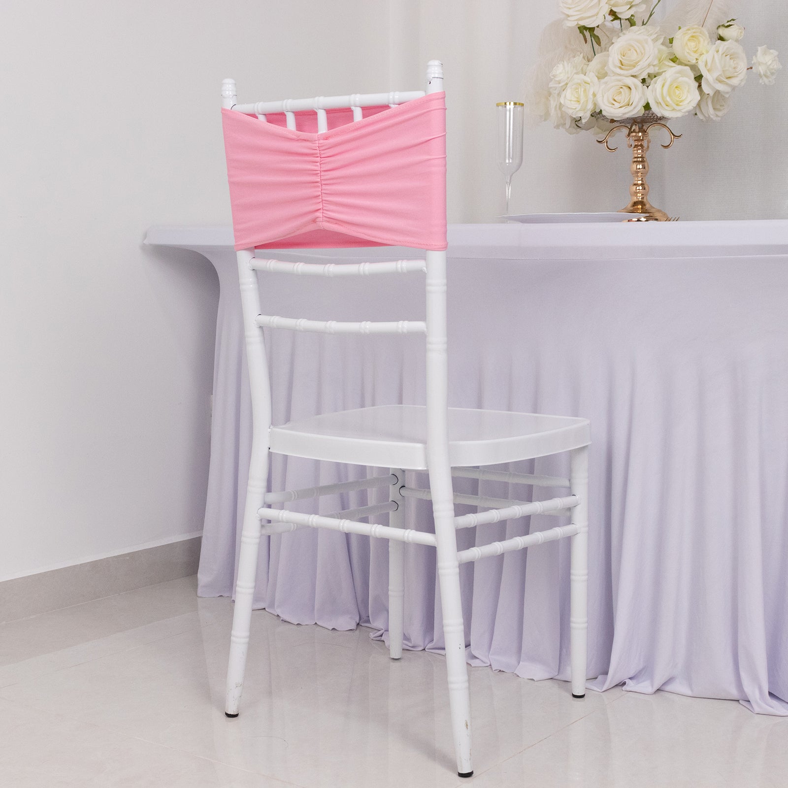 Durability is a key feature of the Pink Ruffled Spandex Chair Sash Band. Made from robust spandex, these sashes maintain their shape and sheen through multiple uses. They are perfect for event planners seeking reliable, reusable decor options.