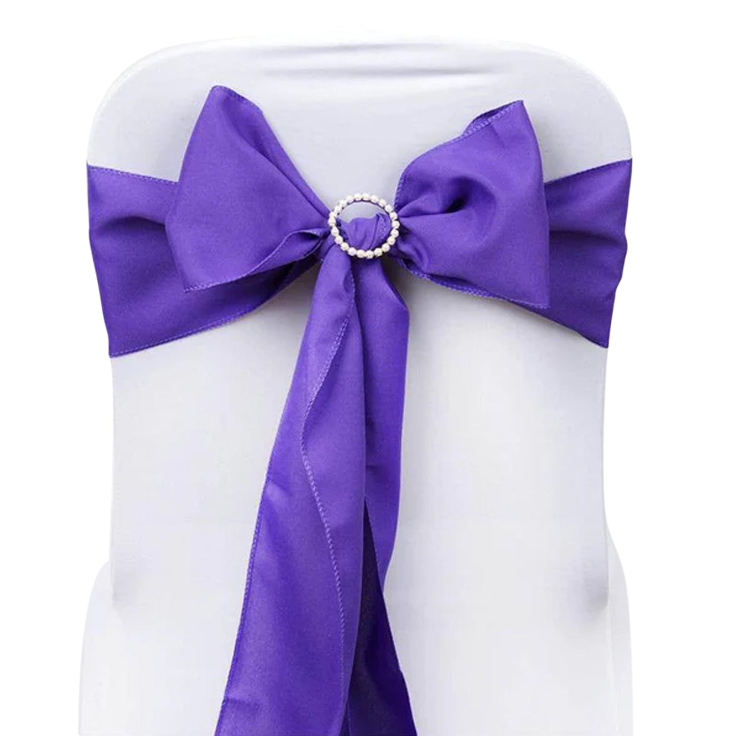 Durability is a key feature of our Purple Polyester Chair Sashes. Made to withstand frequent use, they maintain their impeccable appearance event after event. This makes them an excellent choice for event planners or anyone looking to create memorable gatherings on a budget.