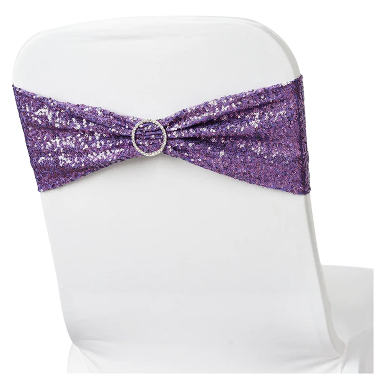 Our Purple Sequin Spandex Chair Sashes are crafted for durability. The high-quality materials ensure they withstand the rigors of event use. You can rely on these sashes to maintain their beauty through various events, making them a smart investment.