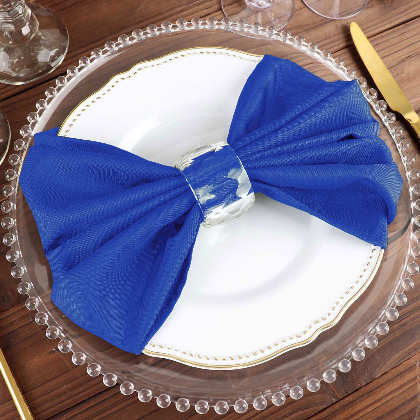 Polyester napkins, like our Royal Blue options, offer several advantages. They are stain-resistant, making them perfect for events with food and drinks. This feature ensures your napkins remain looking fresh and clean throughout the event.