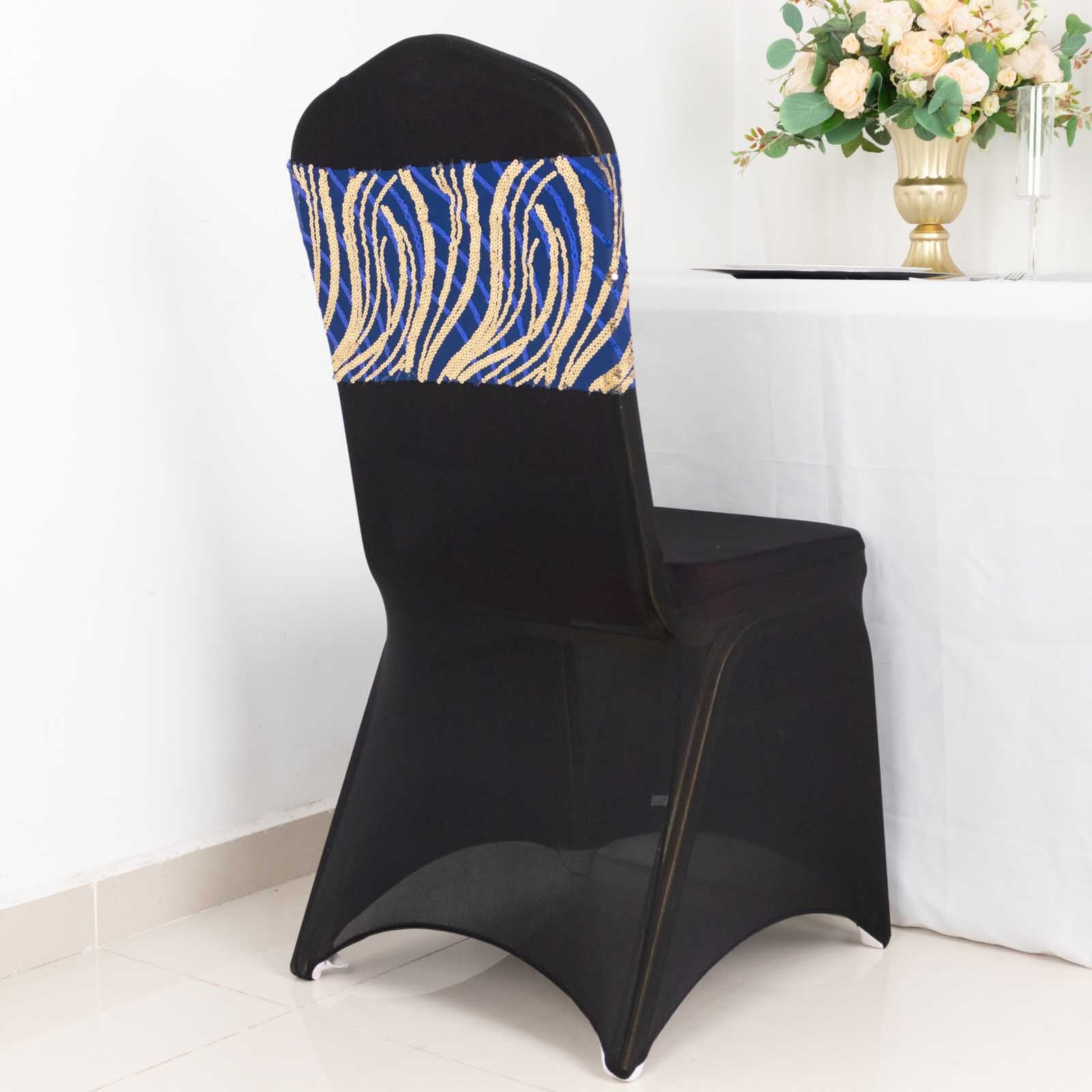 5 Pack Royal Blue Gold Wave Chair Sash Bands With Embroidered Sequins